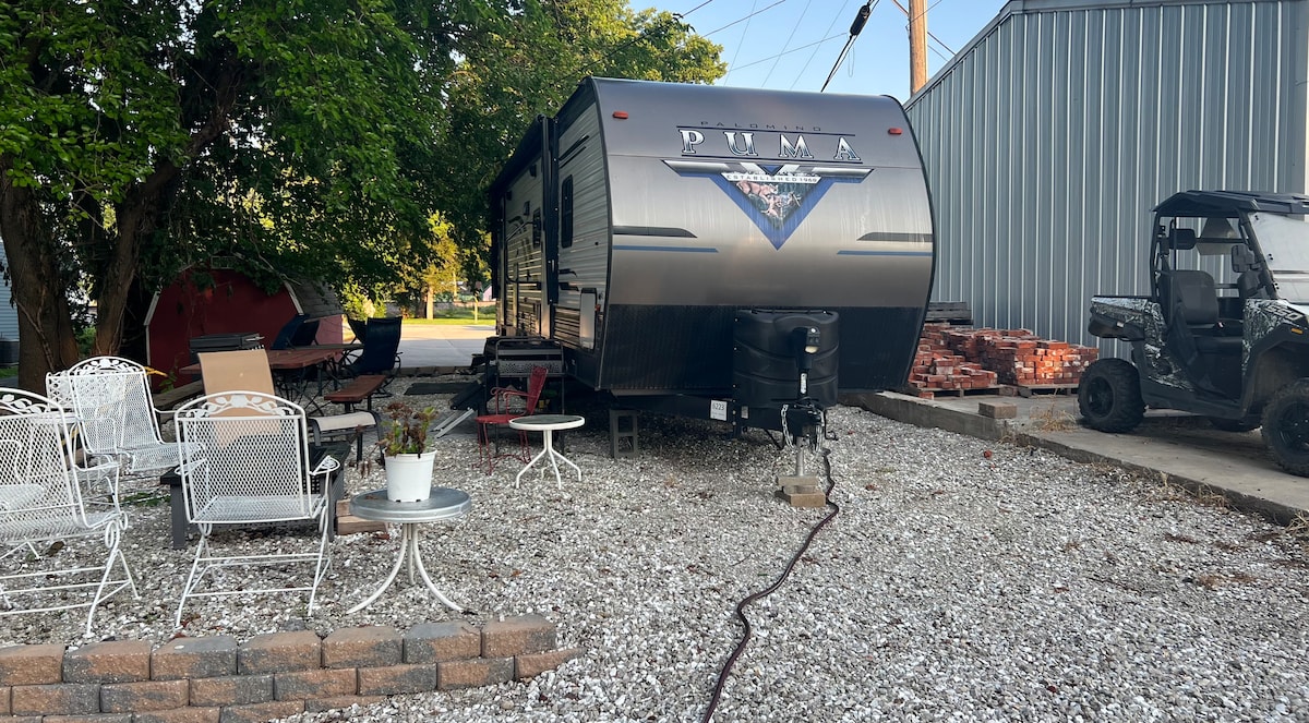 Questo camper è moderno. È pulito, sicuro e abbastanza grande da essere confortevole. Dispone di una camera da letto separata con porta, due aree salotto (trasformabili in zona notte aggiuntiva). Ci sono un tavolo da picnic, posti a sedere intorno al focolare, un tavolo con quattro sedie, il tutto all'ombra. Il sistema radio funziona anche all'esterno. Ci sono due biciclette e puoi usarle fianco a fianco (con rinuncia firmata e conducente autorizzato). Il soggiorno include una colazione M-S e caffè al Grand River Marketplace locale.