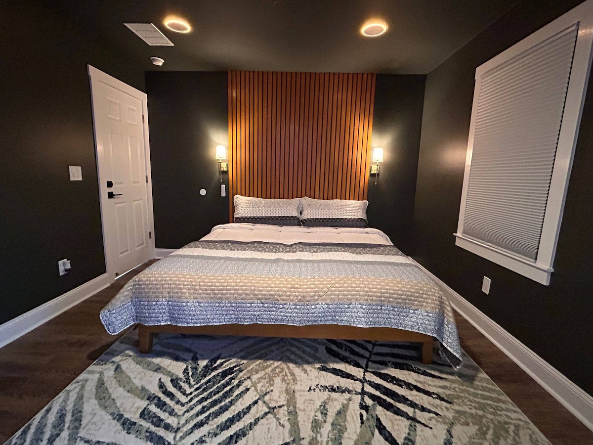 Suite degli ospiti recentemente ristrutturata con ingresso senza chiavi e separata dagli alloggi principali. Situata su una tranquilla strada di campagna, ma a pochi minuti dal Berry College, dal campo da tennis, dall'aeroporto e dagli ospedali. Piena di luce naturale e con una splendida vista sul tramonto, la camera può essere oscurata con tende oscuranti per dormire. Suite arredata con letto king-size premium, 2 comodi letti singoli, bagno, armadio, Amazon TV Fire Stick, tavolo da pranzo/lavoro, mini-frigo, forno a microonde, tostapane, macchina per il caffè, caffè e tazze.
