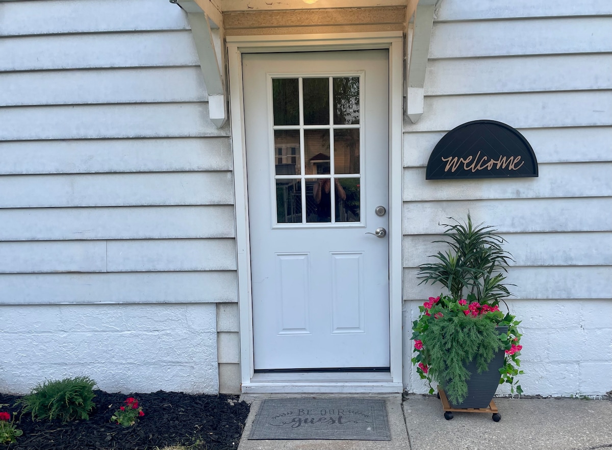 Sentiti a casa in questa tranquilla e allegra suite privata situata sul retro della nostra casa e goditi la vista del cortile simile a un parco. Tranquilla zona residenziale situata nella contea di Erie! A soli 20 minuti dal centro di Buffalo, dal Peace Bridge (Canada), dall'aeroporto di Buffalo e dal Galleria Mall. A 10 minuti dallo stadio New Era (Buffalo Bills) o dal campo da golf Harvest Hill o dal parco Chestnut Ridge, a 15 minuti dalla spiaggia di Woodlawn, a 15 minuti dalla Fiera di Amburgo, a 15 minuti dalla Basilica e dai giardini botanici, a 25 miglia dalle cascate del Niagara.