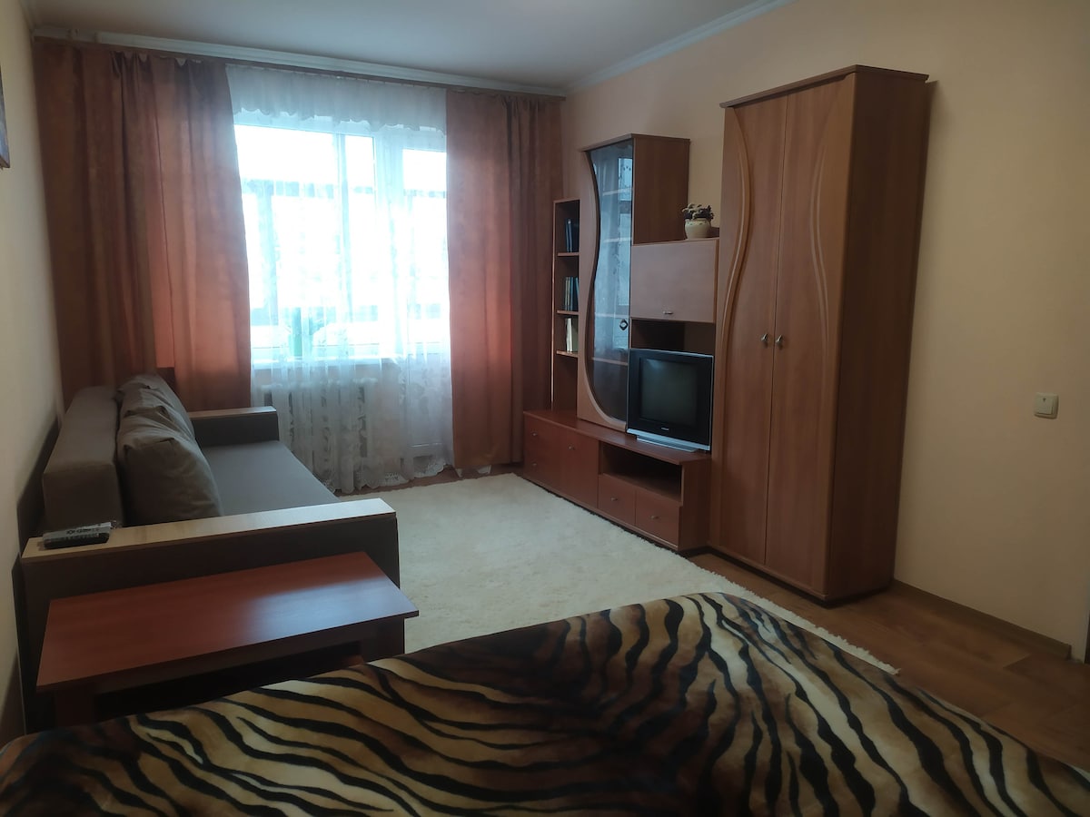 L'appartamento si trova a Chigirin, nell'Oblast 'di Cherkasy. La distanza dalla città di Cherkasy è di 60 km. Dimentica le preoccupazioni in questo spazio spazioso e sereno. Il nostro appartamento dispone di un corridoio,due camere - un soggiorno e una camera da letto, una cucina - un monolocale, un bagno. L'appartamento ha un pavimento caldo, riscaldamento autonomo, acqua calda e fredda 24 ore su 24. Se i mobili abbiamo due divani, una poltrona letto, un tavolo, un mobile, una TV con cucina c'è un frigorifero, un bollitore elettrico, una stufa elettrica, un mobile da cucina e gli utensili da cucina necessari.