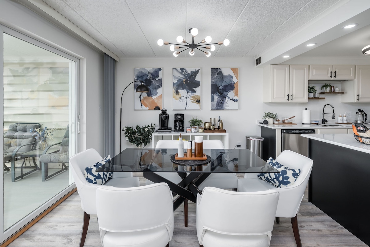 Ti diamo il benvenuto a Bayside Bliss, un elegante appartamento all'ultimo piano 2Br/ 2BA nel centro di OC. Rilassati nell'ampio soggiorno, riproduci i tuoi programmi e la tua musica preferiti su una delle smart TV o ammira il tramonto dal portico. La cucina completamente attrezzata, la lavatrice e l'asciugatrice e due bagni completi faranno sentire il tuo soggiorno come a casa. A pochi passi da alcuni dei migliori ristoranti di OC, dalla vita notturna, dal lungomare e dalla spiaggia. A pochi passi dalle pesate del White Marlin Open e dall'OC Air Show