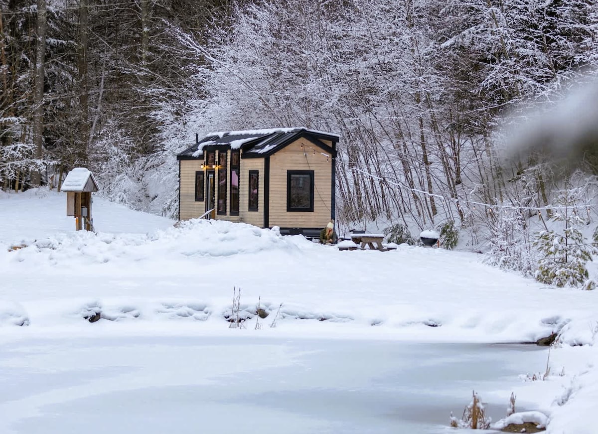 Ti diamo il benvenuto alla Thistle House, una minicasa in cedro costruita su misura, circondata da 2 ettari di paesaggio naturale nello splendido Vermont meridionale. Ammira le stelle comodamente dal tuo letto, rilassati nella sauna a botte, rilassati vicino al focolare che si affaccia sul tuo laghetto privato o esplora le numerose attività all'aperto della zona. Ski Okemo, Magic e Bromley. Escursione con le ciaspole o fai escursioni nelle prove locali e nelle cascate, e goditi negozi e ristoranti pittoreschi. Animali domestici benvenuti. Seguici su IG per aggiornamenti e offerte speciali sui soggiorni: @campgreenwood.