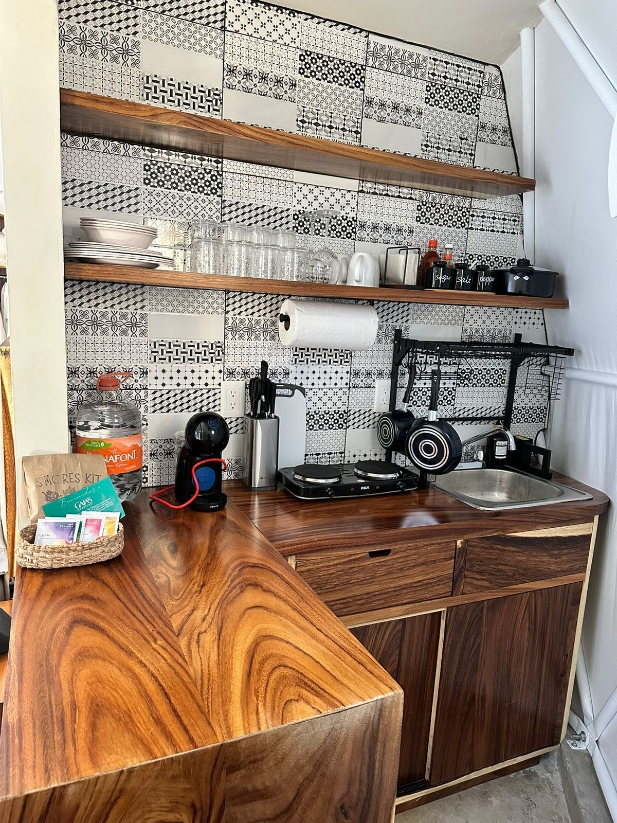 Experience the magic of our Geodesic Dome, a wooden and fabric retreat designed with sacred geometry to inspire absolute peace. Let yourself be carried away by the sound of the sea in this circular space that invites deep relaxation. This eco-friendly cabin features a shared bathroom, ideal for those seeking an authentic and natural connection. An additional mattress can be added for 250 pesos.