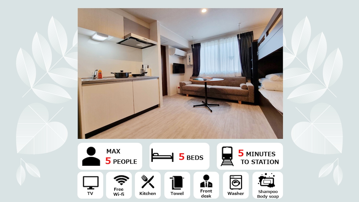 Si trova in una buona posizione, a 3-4 minuti (260 m) a piedi dall'uscita ovest della stazione di Asakusabashi, la stazione più vicina. La stazione di Asakusabashi si trova sulla linea JR Sobu, sulla linea Toei Asakusa e sulla linea Toei Asakusa, con accesso diretto dall'aeroporto di Narita/Haneda. Si trova in una posizione molto comoda, con un buon accesso a tutte le zone della città. Si trova inoltre a circa 15-20 minuti a piedi dalle aree di Akihabara, Ueno e Asakusa. Ci sono molti ristoranti nei dintorni, come caffè, izakaya, negozi di ramen, ristoranti e alcuni minimarket nelle vicinanze. L'edificio è stato completato nel 2022, la stanza è stata completamente ristrutturata a marzo 2025, gli interni eleganti moderni e tranquilli, le strutture migliorano la funzionalità Spazioso monolocale di 32 ㎡ (con cucina) con 3 letti singoli, un divano letto, un tavolo rialzato, un piano cottura a induzione, un bagno con doccia, un WC con bidet, un forno a microonde e un balcone esterno. Ospiti aggiuntivi: (1.500 yen a persona a notte) Check-in anticipato: Potrebbe essere possibile (2.000 yen all'ora) Check-out posticipato: Potrebbe essere possibile (2.000 yen all'ora)