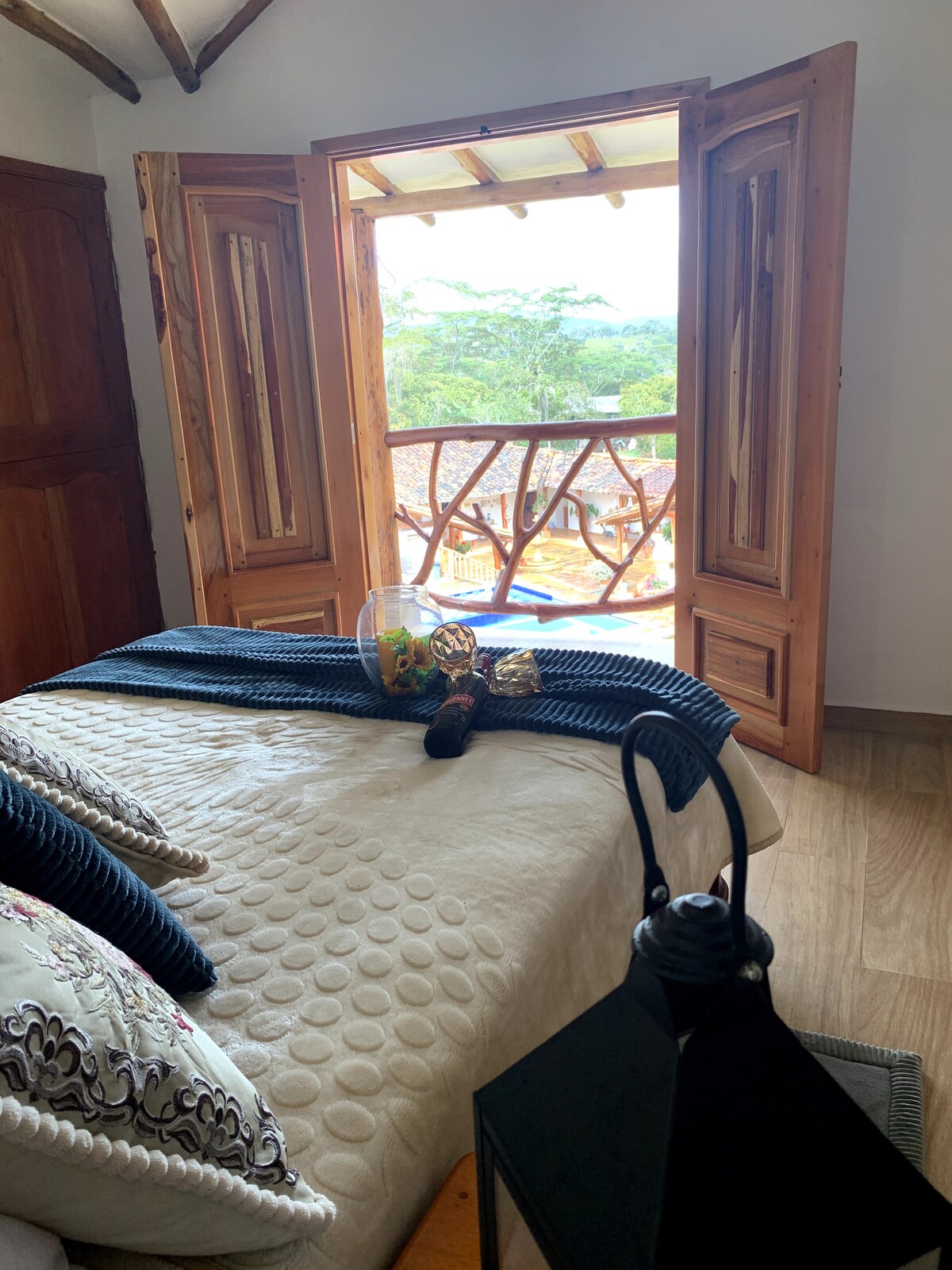 Siamo un hotel di campagna con tutti i servizi, reception 24 ore su 24, aree verdi, piscina, 4 vasche idromassaggio, bagno turco, parcheggio e wifi, tutto incluso nella tariffa. Siamo nella periferia di San Gil, lasciando 1 km lungo la strada per Bucaramanga. Disponiamo di un ristorante dove sarà inclusa la deliziosa colazione a Santandereano e piatti à la carte fino alle 20.30. Siamo in una parte alta, tranquilla e piena di natura, l'intera struttura ha la vista sulle montagne.