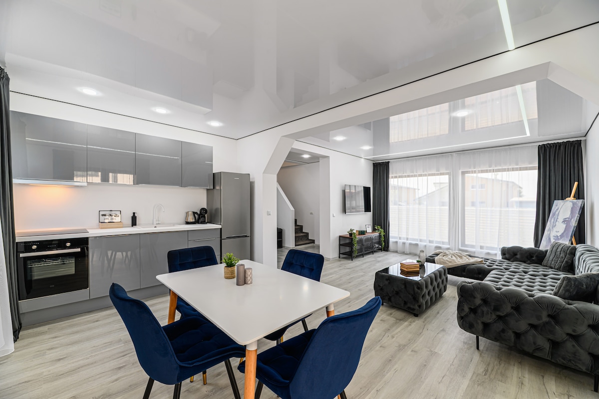 Appartamento moderno con due camere da letto e vista sul centro storico di Brașov, progettato per avvolgerti nel comfort. Assapora il tuo caffè preferito sulla nostra terrazza su due livelli, goditi mobili personalizzati, arredi scelti con cura e viste mozzafiato sulla città su 3 lati: il centro storico, la Cittadella, Livada Postei e Piața Universită, tutti ben visibili da Juniper. Vicino alla strada di accesso Warthe alle piste di Poiana Brasov, l'appartamento dispone di una cucina completamente attrezzata, di un garage coperto e di un cortile recintato.