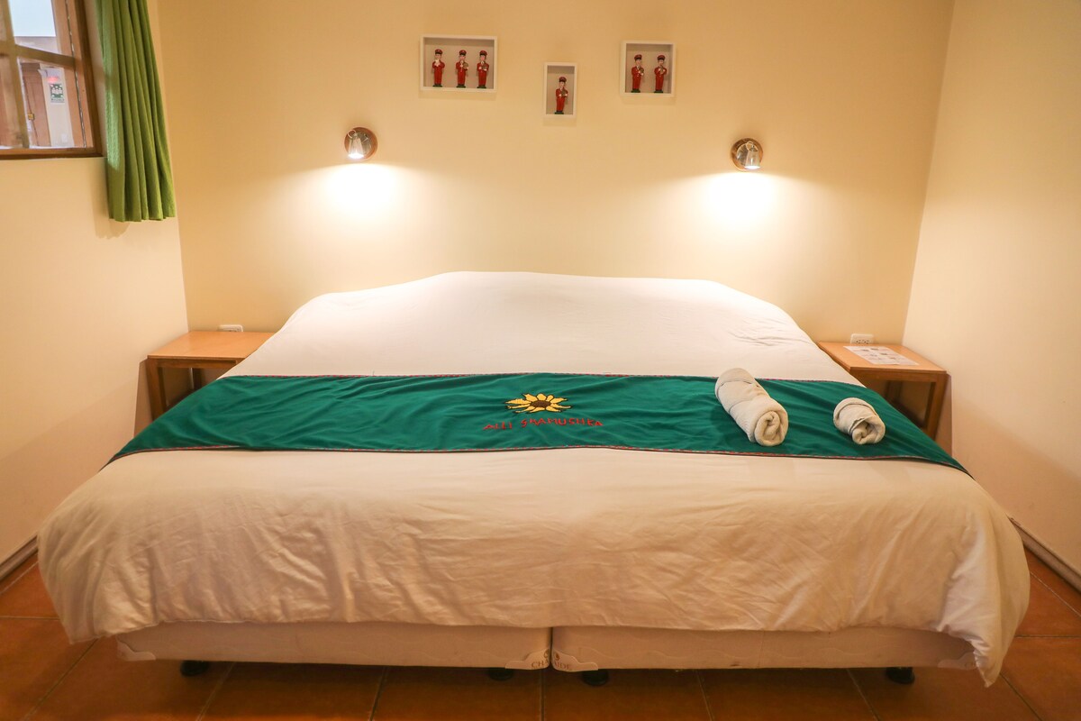 Goditi un soggiorno piacevole e confortevole con colazione nella tua incantevole camera d'hotel, dove potrai riposare e condividere momenti indimenticabili. Oltre alla tua camera, potrai godere di una splendida vista sulla terrazza dell'hotel, dove potrai rimanere stupito dalla vista panoramica dei vulcani che circondano la città di Riobamba, tra cui il Chimborazo innevato. Oltre alla tua camera, potrai usufruire anche delle diverse aree comuni come caffetteria, cucina, soggiorno e terrazza.
