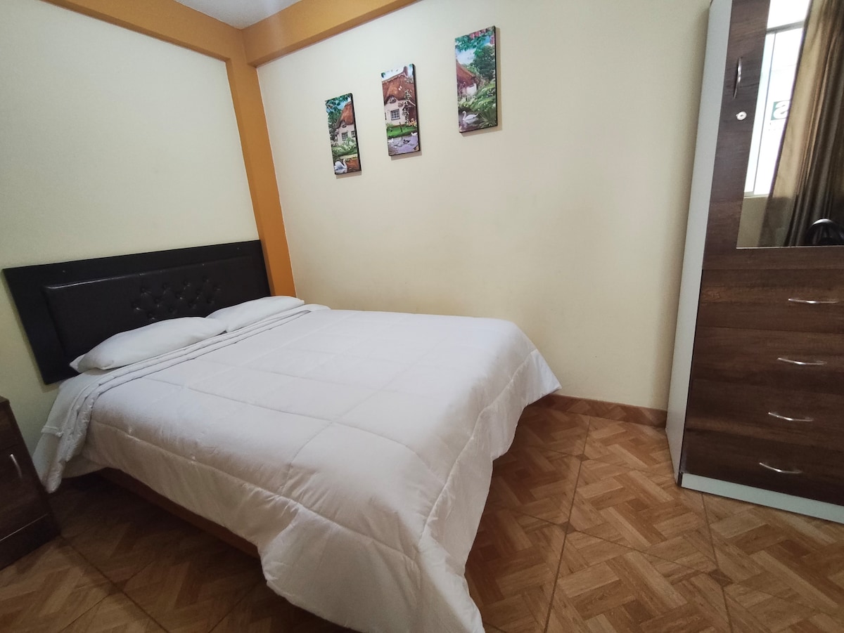 Con questo alloggio, la tua famiglia o i tuoi amici saranno vicini a tutto quando soggiornerai in questo alloggio all'angolo di Plaza de Chivay. L'appartamento dispone di 02 comode camere da letto con smart tv in ogni camera, 01 cucina moderna con open concept, piccola sala da pranzo, salotto, 01 bagno moderno e bagno di servizio, acqua calda h24. WI FI e garage inclusi