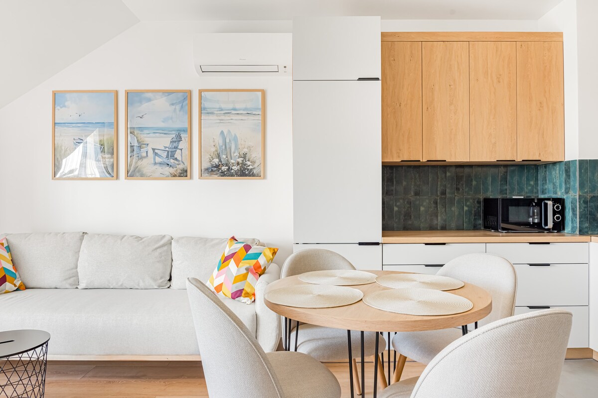 Apartment Linterna è un elegante paradiso balneare nel moderno complesso Let's Sea Gąski, a soli 100 metri dalla spiaggia. Progettato per 4 persone, l'appartamento arredato con stile delizia con pelle scamosciata blu, accenti dorati e uno spazio creato per il comfort. Una camera con serratura con un grande letto, un soggiorno con zona lavoro a distanza, internet e uno spazio in garage. Perfetto per una vacanza in famiglia o un romantico weekend in riva al mare, con accesso alla piscina, alla vasca idromassaggio, alla sauna e al campo da tennis.