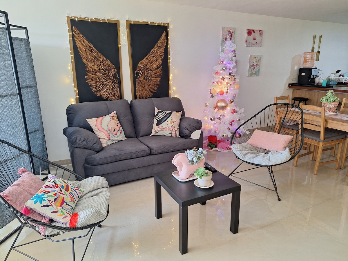 Ideale per coppie, famiglie o gruppi. Moderno, di 200 metri abitabili a tre minuti dall'Udlap. Adatto a persone in sedia a rotelle al piano terra. Fatturiamo. Abbiamo 3 appartamenti nella stessa frazione. Per gruppi o famiglie numerose. Posizione a 2 minuti dalla tangenziale ecologica e diretta a Cholula, a 7 minuti dalla Piramide di Cholula. Internet ad alta velocità. Dotato di lavatrice e asciugatrice. Abbiamo asciugamani, shampoo, sapone, acqua potabile, caffè e zucchero.