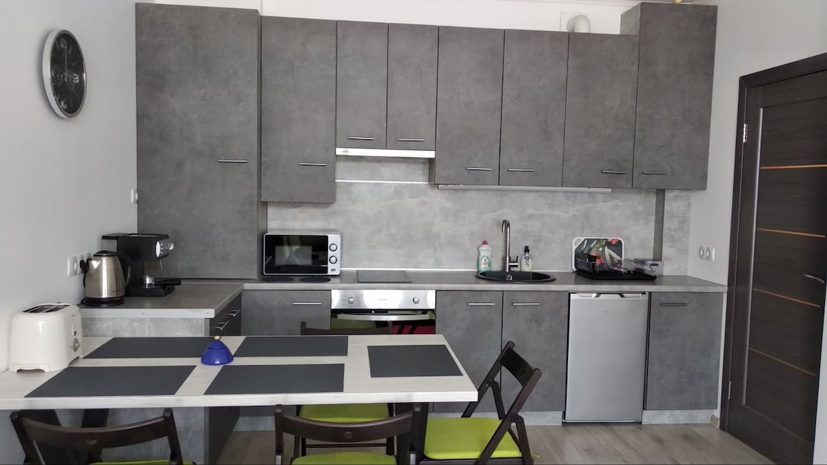 Il monolocale si trova nel centro della città, in un quartiere molto tranquillo. È il luogo perfetto per ospiti da soli e coppie. Ristoranti, caffetterie, bar, alimentari, centri commerciali si trovano a 5 minuti a piedi. Tutte e tre le principali linee della metropolitana sono raggiungibili a piedi in massimo 15 minuti. L'appartamento è appena ristrutturato e dispone di tutti i servizi essenziali. L'interno ha un'atmosfera artistica vivace. Ti sentirai a tuo agio e ispirato!