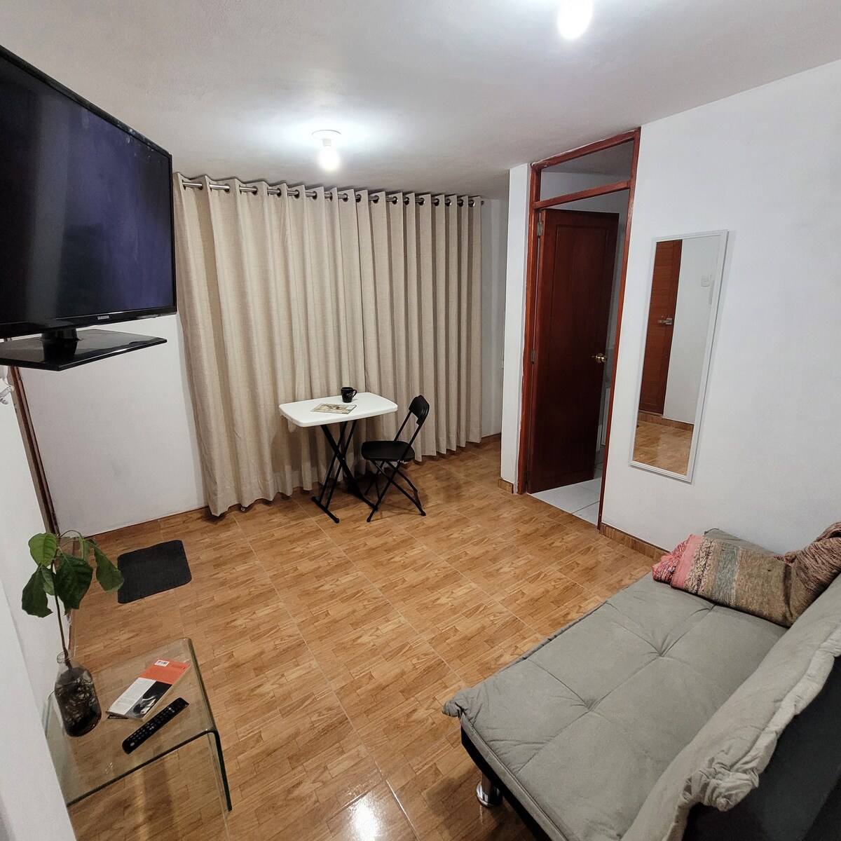 Cerca al hospital Ramiro Priale (Essalud). Este apartamento es un alojamiento 🏡bastante acogedor para que disfrutes con los tuyos. Con una arquitectura ampliada de piso a techo. 💰 Tarifa según huéspedes y dormitorios – Hasta 2 huéspedes: S/120 (1 dormitorio). – 3 a 4 huéspedes: S/140 – S/160 (2 dormitorios). – 2 huéspedes en dormitorios separados: se aplica tarifa de 3 huéspedes:S/140 El segundo dormitorio se habilita a partir del tercer huésped o con tarifa adicional.