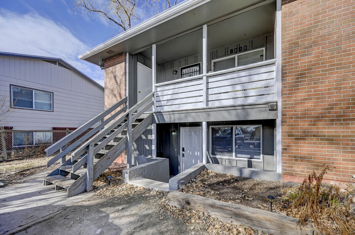 Our adorable 745 SQFT apartment is tucked away at the end of a cul de sac with a beautiful Pikes Peak view & is near many CO Springs attractions, grocery stores & shopping. You will be welcomed with a sparkling clean space & thoughtful touches including coffee, spices, & oil. The 2 bedrooms & 1 full bath have been freshly remodeled. Keeping your comfort in mind, we have included an LED Smart TV, radiant heat, private parking, & laundry (coin-op). We are excited to host your stay!