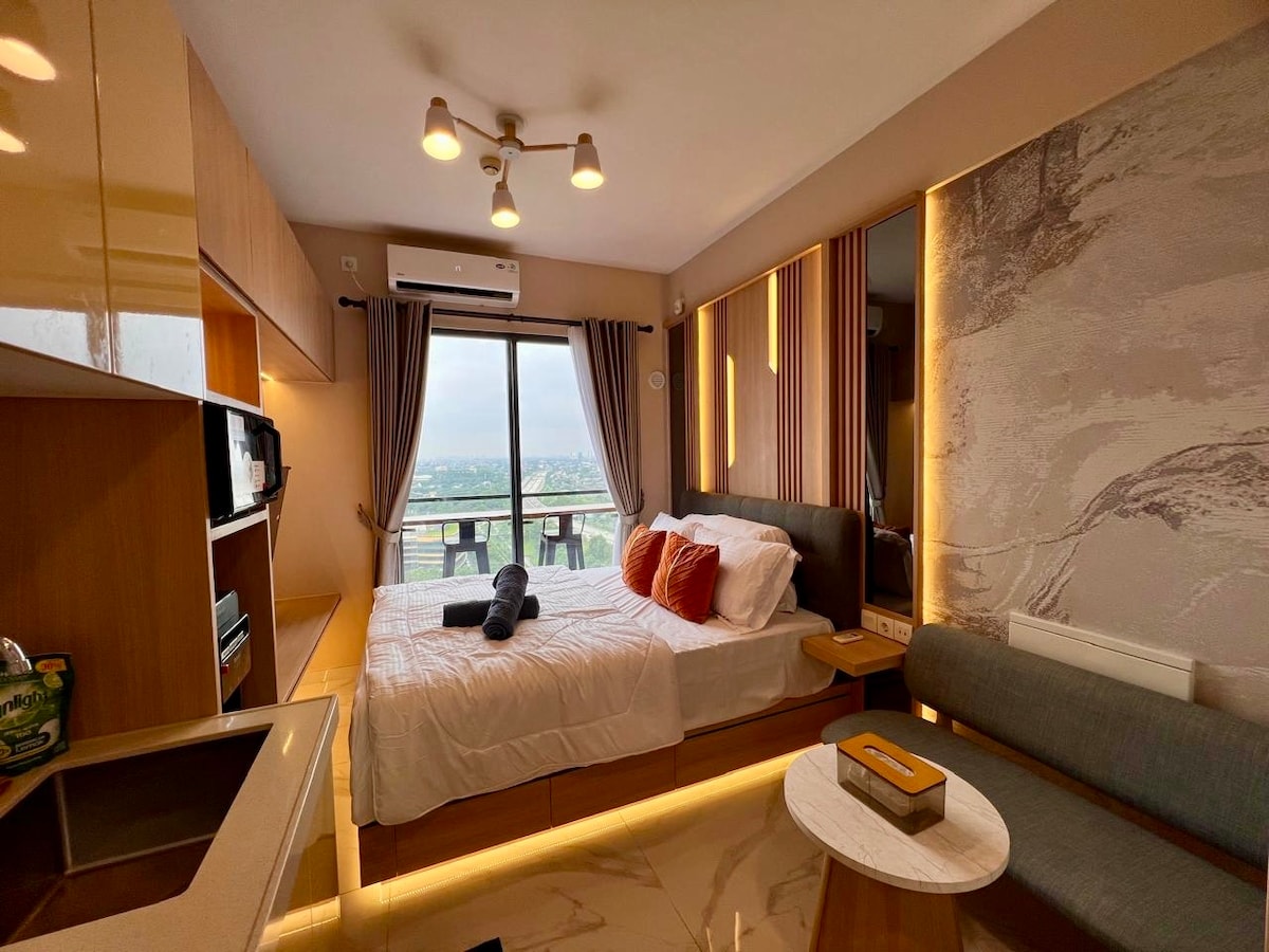 Appartamento recentemente arredato per un massimo di 3 persone presso Sky House BSD Posizione: - A pochi passi da AEON Mall BSD / The Breeze - Tanti inquilini di tendenza, che ti permettono di trovare facilmente qualsiasi cosa, dal cibo all'intrattenimento 💁🏻♀️ Servizi in camera: - Letto a molle da 160 x 200 - 1 letto singolo 100 x 180 - Scaldabagno - Smart TV per guardare Netflix - Zona cucina (frigorifero, cuociriso, padella, ecc.) - Area spazio di lavoro Adatto a 3 persone. buon viaggio ✨