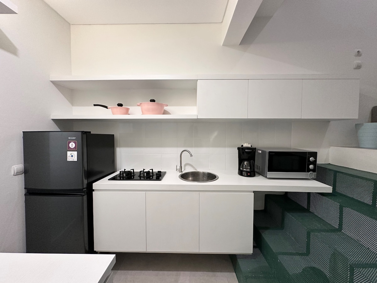 Goditi una fantastica fuga in questa accogliente casa minimalista e moderna! Soggiorno, 1 camera da letto con letto matrimoniale, 2 letti a castello, 2 bagni e cucina. Può ospitare fino a 4 persone per un soggiorno confortevole! Divertiti a rannicchiarti sul divano letto del nostro soggiorno a guardare Netflix. Adatto per una vacanza con la ❤️ famiglia, o semplicemente per rilassarsi mentre si partecipa al proprio evento preferito all'ICE BSD City (5,3 km) Altre attrazioni nelle vicinanze: Branchsto (1,9 km) Grandlucky Superstore (3,5 km) Qbig (4,1 km) Aeon Mall (5,9 km)