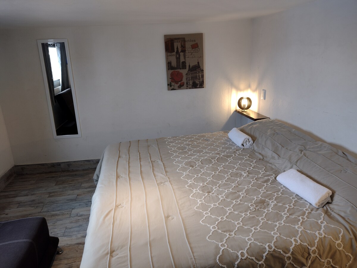 Nuovo appartamento minimalista che ha tutto il necessario per un viaggiatore per trascorrere una notte confortevole, ci troviamo in una buona posizione in quanto ci troviamo in una delle strade che collegano diverse colonie, di fronte a noi abbiamo un negozio OXXO, accanto a noi un dentista e la fermata dell'autobus, vi sentirete come a casa e le strutture di trasporto sono molte.