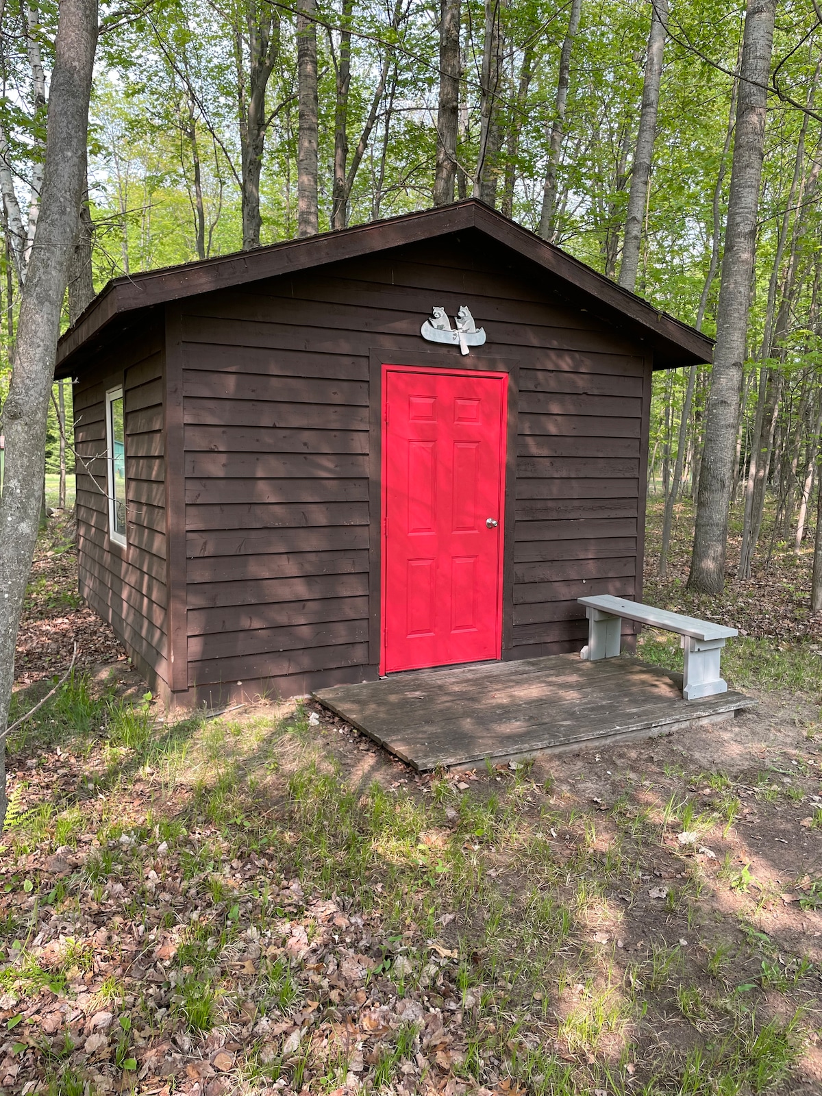 A sole 2 ore e mezza dalla metropolitana D, rifugiati in questo accogliente chalet con 2 ponti e un braciere! Accendi un falò, noleggia un kayak o una barca e goditi il lago o percorri i sentieri su un quad. Nelle vicinanze è possibile pescare, fare escursioni, visitare graziose cittadine per lo shopping, i festival e la ristorazione. Amish locale per acquistare prodotti freschi. La baita è completamente ristrutturata, con un soffitto a cattedrale in legno proveniente dalla foresta di Manistee, mobili realizzati a mano da artisti e opere d'arte originali di artisti del Michigan. Un ottimo posto per ricaricarsi!