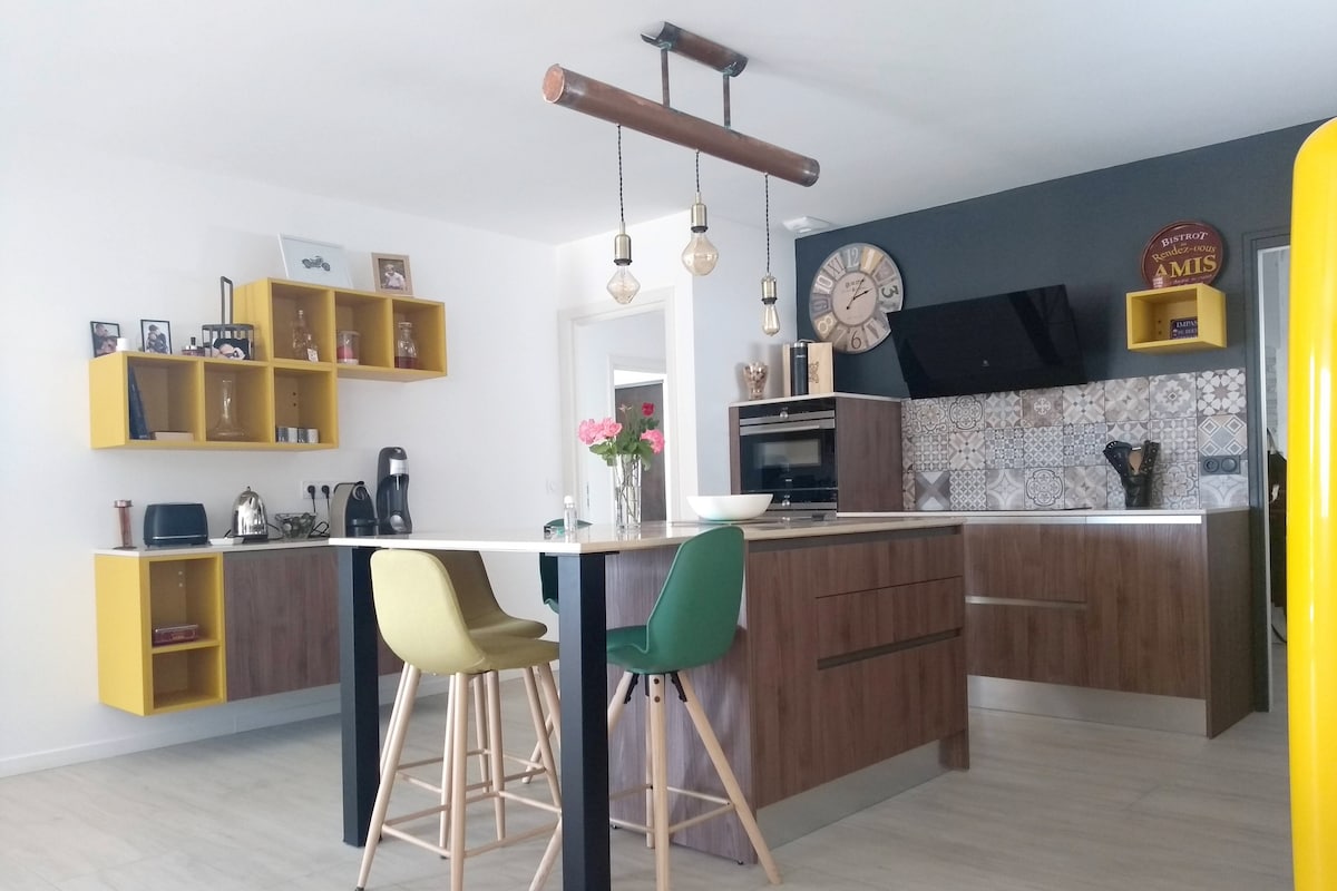 Rilassatevi in questo alloggio tranquillo ed elegante nel cuore della città di Valenza a 10 minuti dal centro della città molto tranquillo La villa 48, sono tre alloggi eleganti, spaziosi e tranquilli per accogliervi in tutta tranquillità. L'appartamento N°1 si trova al 1° piano con accesso tramite una scala, questo alloggio duplex dispone di un ampio soggiorno, la camera da letto si trova al piano superiore con il suo bagno. Tutti i comfort sono a vostra disposizione.