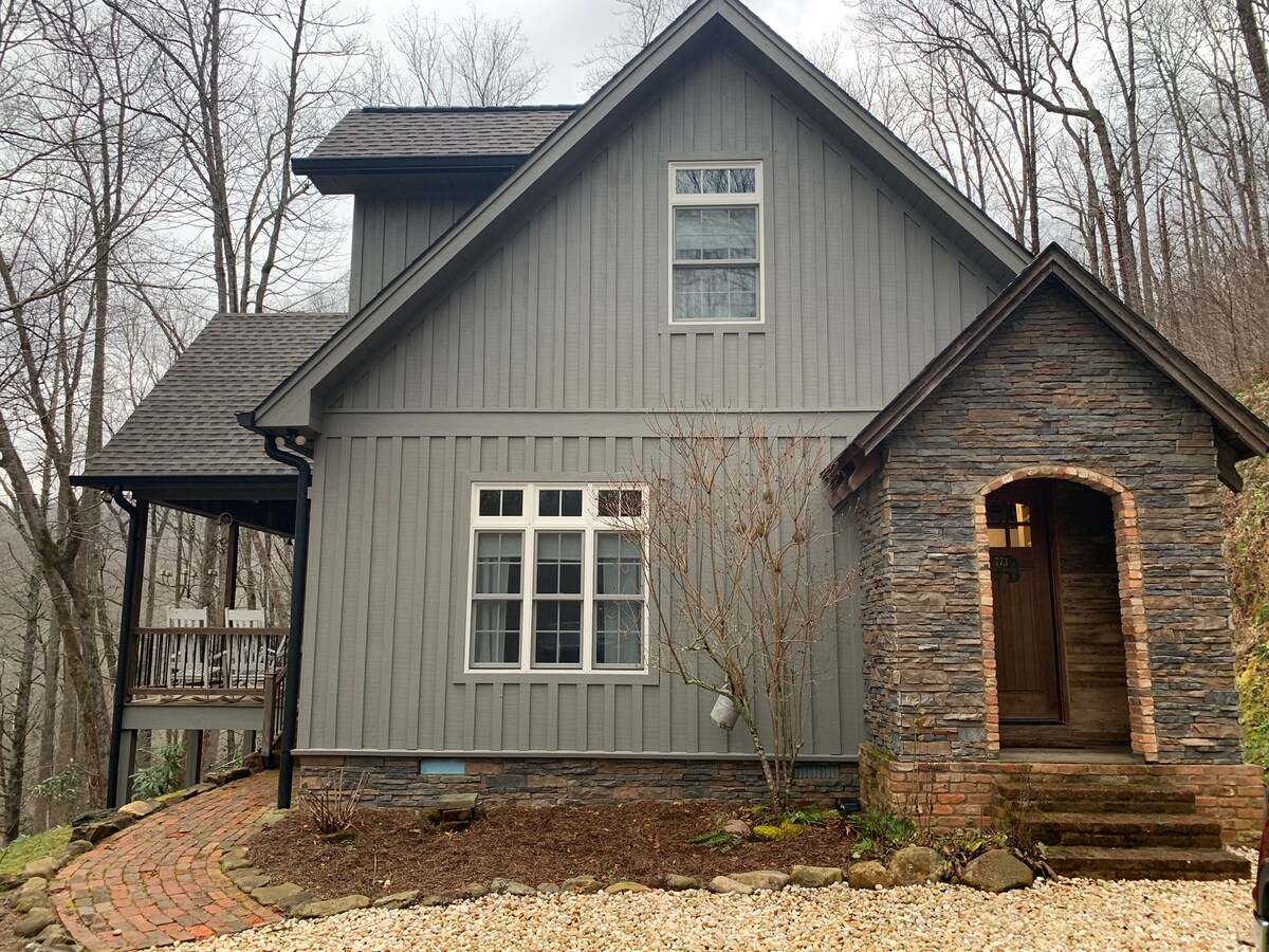 Dependance sopraelevata lungo il torrente con splendida vista! Appena ristrutturata, con zona bar all'aperto. Pianta aperta. Cucina ben attrezzata. TV. Wifi. 1 camera da letto e 1 bagno. Perfetto per una breve vacanza! Ampia camera da letto e bagno con doppio lavabo. Lavatrice e asciugatrice. Griglia a gas. Focolare a bordo torrente! Comodamente situato nel centro di Hayesville, vicino a Hiawassee e al lago Chatuge. Porta il cane, le biciclette, le scarpe da trekking e divertiti! Ora con Internet Starlink! Velocità di download superiori a 150 Mbps.