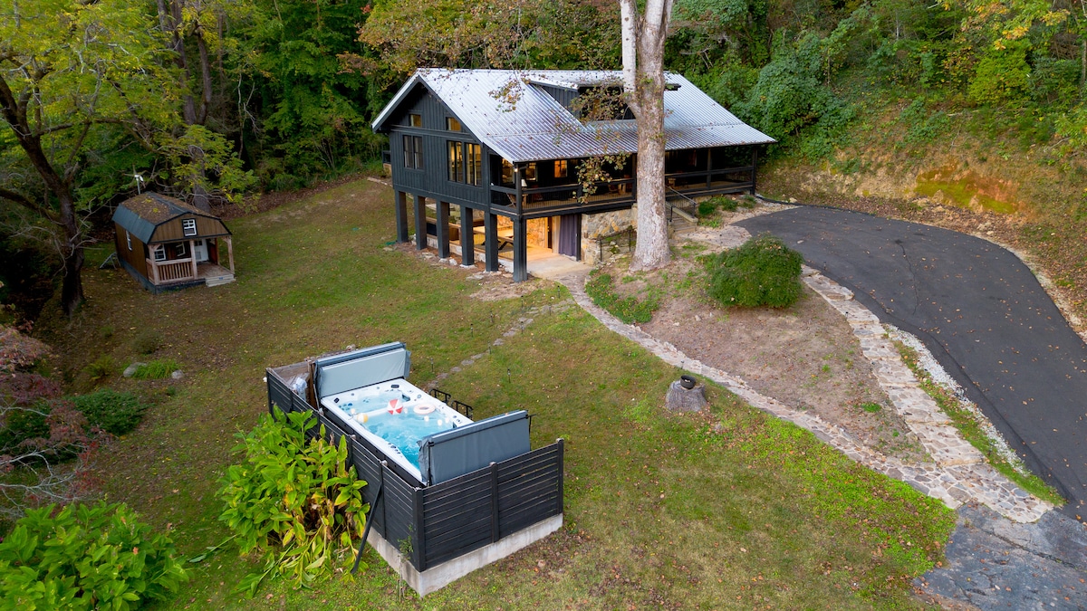 Questa casa personalizzata, costruita nel 2020, è il luogo perfetto per rilassarsi. Situata al largo di una strada privata (non è necessaria la trazione integrale), si trova su 4,25 acri, con splendide viste sulle Great Smoky Mountains. Una volta lì, ti sentirai davvero lontano dal mondo. Il suo design moderno, scandinavo-giapponese, è unico nella zona. Include: camera da letto principale, soppalco (futon matrimoniale e letti a castello personalizzati Twin XL); cucina a vista/soggiorno, patio coperti e aperti. A 10 minuti da Bryson City e Cherokee.