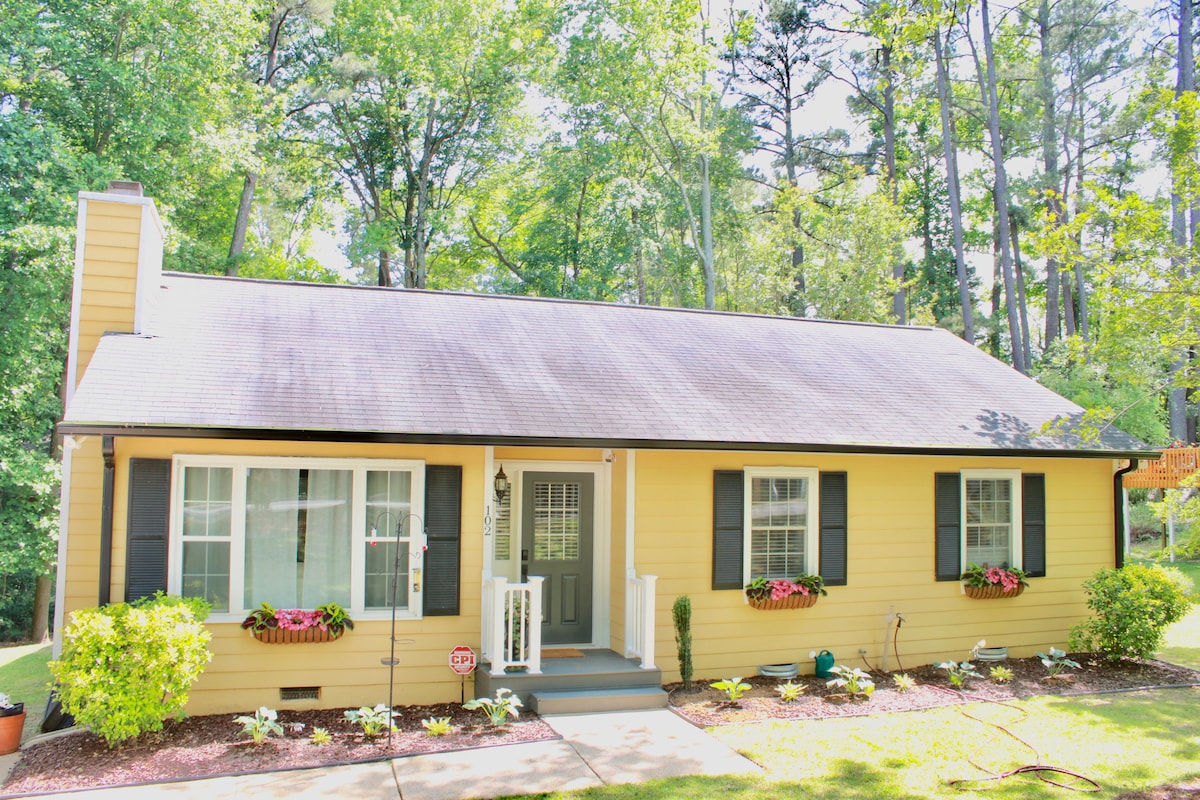 Cozy guest cottage backed by woods! 550 sq ft private house with loft bedroom, kitchen and bath (PLEASE NOTE NO FREEZER -only fridge) 30 min from Raleigh, Cary, Apex, and 10 min to Fuquay-Varina with 10 minute access to the 40. High speed wi-fi, smart tv, and complimentary coffee.Street parking-May not be a good fit for people with mobility issues. The front door is 110 steps from the street including a stone pathway down the lawn. Very dark at night-use phone light on path.