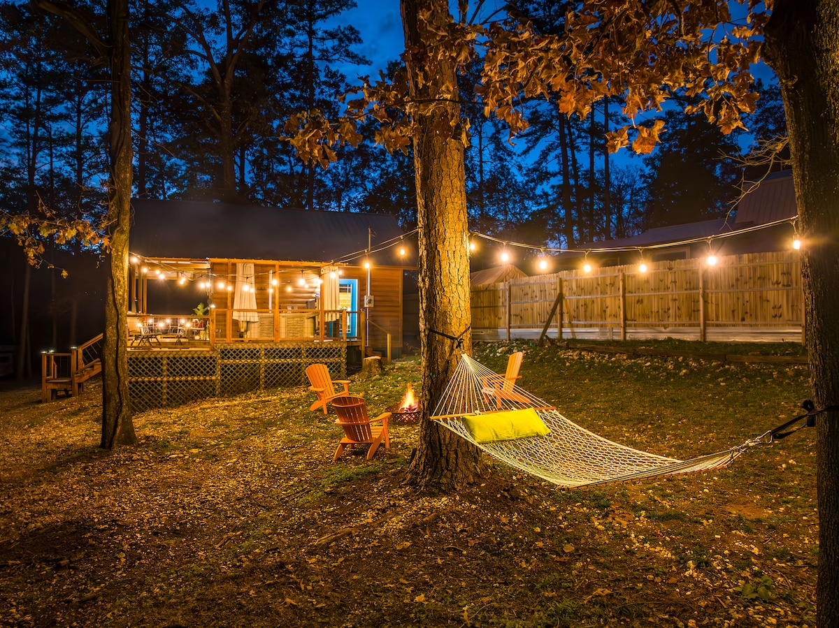 Romantico chalet di lusso su 1,5 acri privati a Broken Bow. Dispone di un lussuoso letto king-size, una vasca idromassaggio di grandi dimensioni, una doccia doppia in stile spa, una vasca da bagno, caminetti interni/esterni e un sentiero privato. Ideale per coppie, lune di miele o piccole famiglie. Costruito nel 2022 con layout aperto, divano letto di design e finiture di lusso. Immerso nella natura, ma a pochi minuti da escursioni, cantine e Broken Bow Lake. Amato dagli ospiti, Occasione unica e 8 volte Superhost. Prenota ora: i weekend e le date più gettonate vanno a ruba.