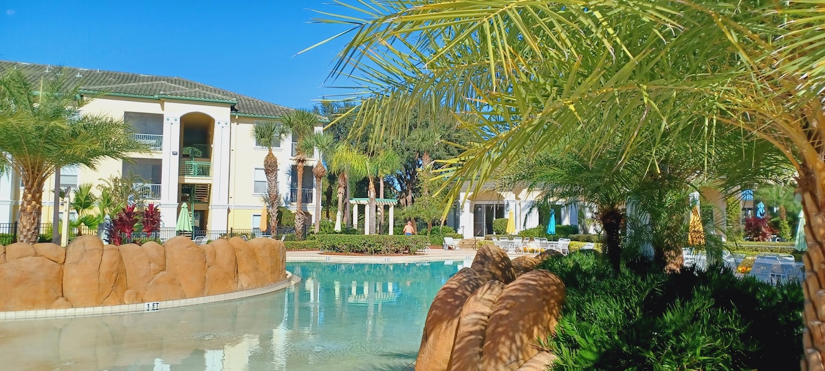 Scopri il nostro incantevole appartamento vicino a Disney, immerso in una comunità in stile resort. Goditi il parcheggio gratuito e nessuna tassa di soggiorno!La splendida clubhouse offre una sala giochi, aree di ritrovo e un centro fitness. Rilassati nella tranquilla piscina riscaldata o approfitta della seconda piscina. Dedicati alle attività sportive presso la gabbia da golf, i campi da tennis, da basket e da pallavolo, o lascia che i bambini giochino nel parco giochi. Passeggia lungo sentieri panoramici che si snodano tra aree paesaggistiche e laghetti per un rifugio tranquillo.