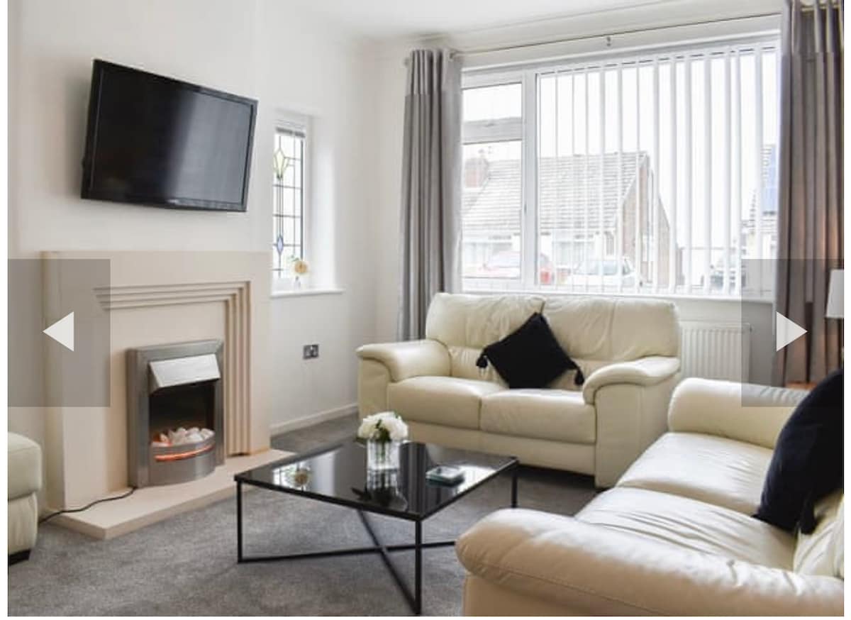 Rifugiati nella nostra incantevole casa sulla spiaggia con 3 camere da letto, perfetta per famiglie, gruppi o coppie in cerca di un rifugio accogliente, la nostra casa può ospitare comodamente 6 persone. - 3 ampie camere da letto con letti comodi e arredamento in stile marino - Soggiorno e sala da pranzo luminosi e open space - Cucina completamente attrezzata - Bagno moderno con asciugamani e articoli da toeletta puliti - Patio esterno privato con posti a sedere - Wifi gratuito e Smart TV A pochi passi dalla spiaggia di Cleveleys, dai negozi, dalle caffetterie e dalle attrazioni locali.