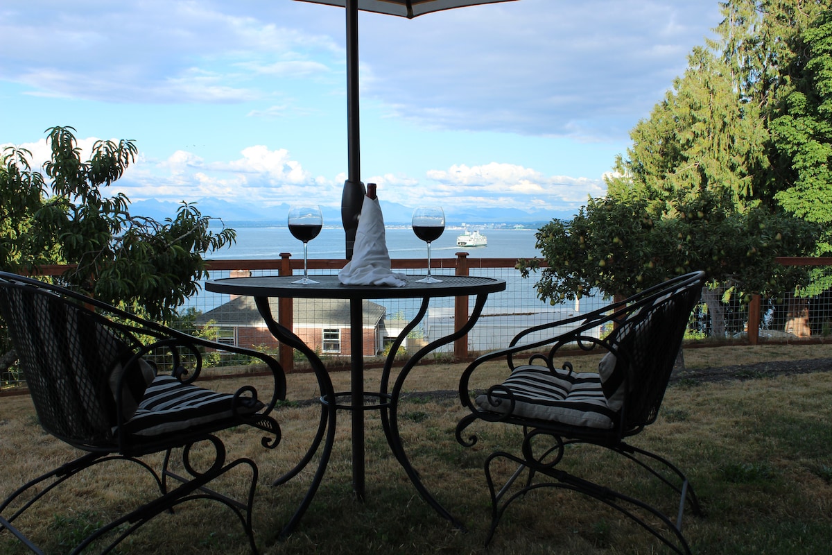 Escape to our WATERFRONT farm just outside of Langley on beautiful Whidbey Island with Eagles & Highland Cows. Our family has lived here since 1890, and we have a wonderful guest cottage sitting on the high bank with 180-degree views of Saratoga Passage, Mount Baker, and the North Cascades. With 900 square feet of open living area, a fireplace, full kitchen, washer/dryer, king size bed, high speed internet, 2 TV's, beautiful furnishings and easy access to the beach it's the perfect get-away!