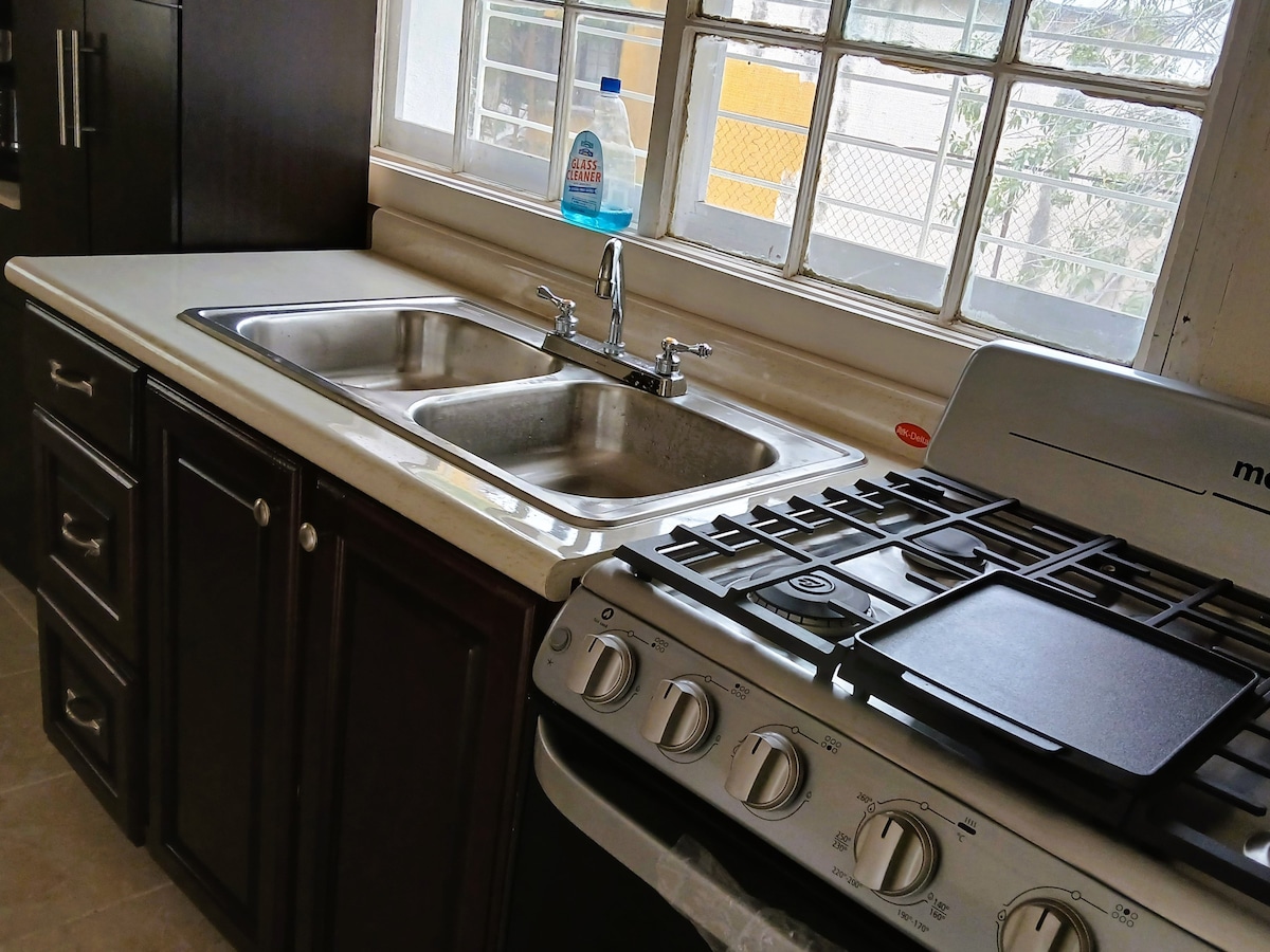 Rilassati con tutta la tua famiglia in questo bellissimo appartamento completamente attrezzato, o se sei in viaggio di lavoro, questo è il posto dove riposare. Disponiamo di cucina, soggiorno, una camera da letto, bagno, aria condizionata, scaldabagno, wifi e TV via cavo.