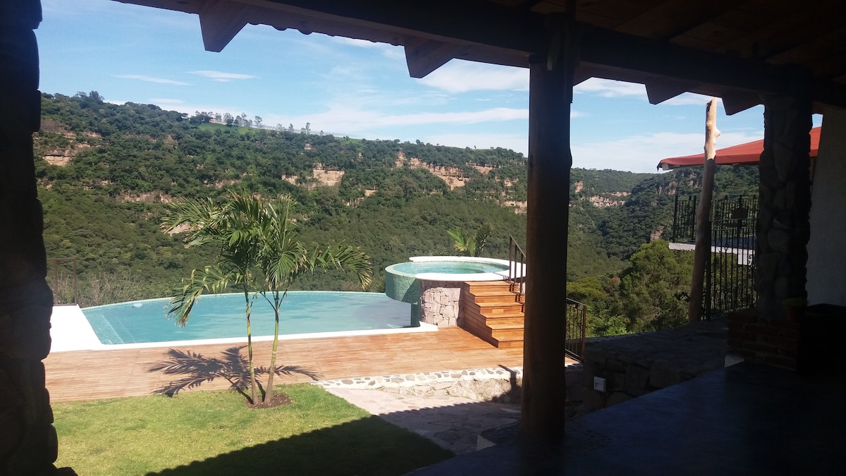 Este alojamiento único tiene mucho espacio para que disfrutes con los tuyos. Se encuentra en un lugar alejado del bullicio de la ciudad, rodeado de la naturaleza, totalmente holístico para que disfrutes y te relajes en compañía de familia y/o amigos. Ademas de tener una alberca infinita que te permite disfrutar de la naturaleza, del microclima de coatepec harinas, su jacuzzi que es climatizado de celdas solares, cuenta con un temazcal que puedes contratar si es de tu gusto.