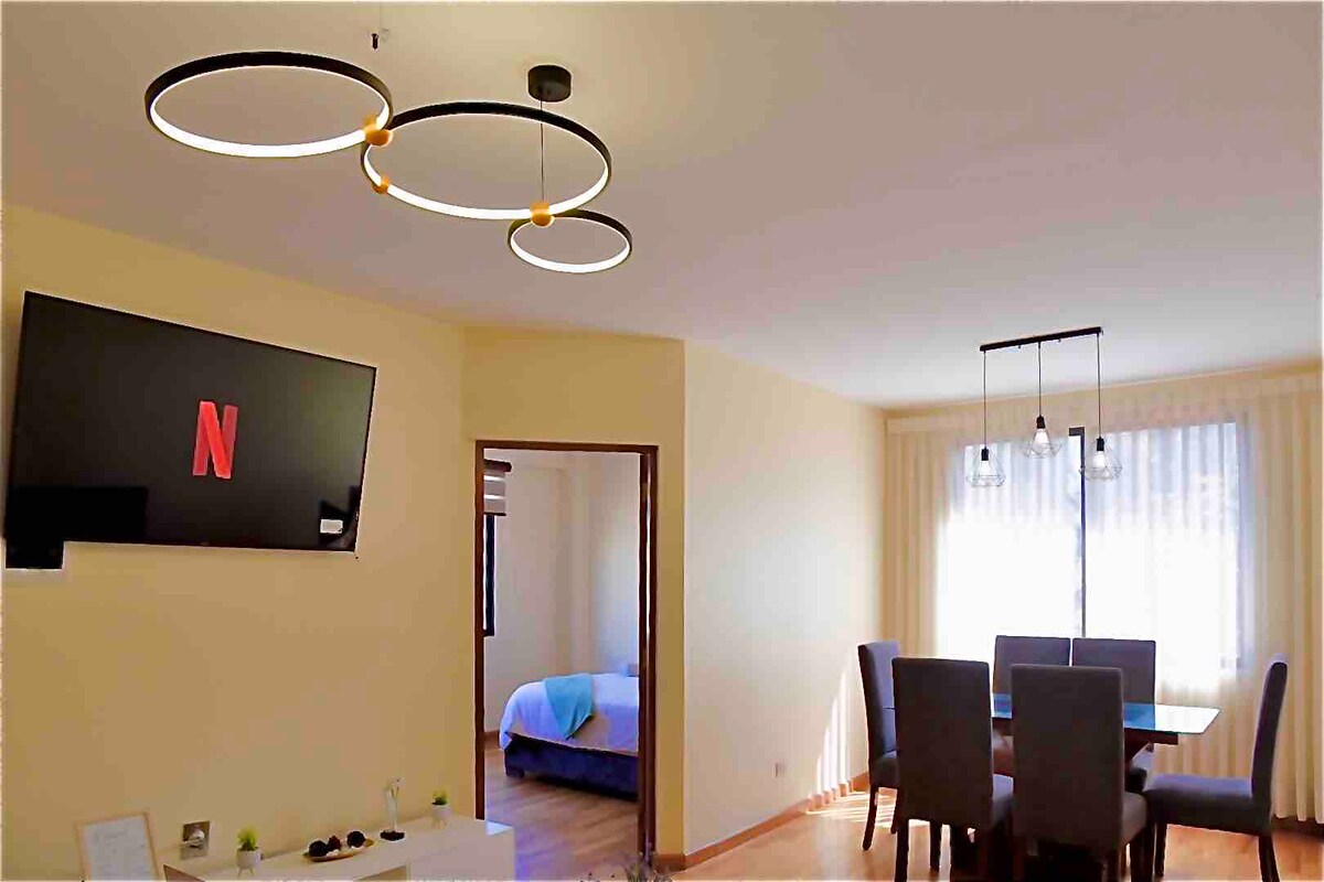 Sono felice di accoglierti nel lusso, nel comfort e nella pulizia di questo appartamento, situato nella posizione migliore di Cochabamba. Sarai nella zona migliore per viaggi di lavoro o vacanze in famiglia. - Smart TV da 80 pollici - Vicino ai mercati tradizionali boliviani. - Ristoranti nelle vicinanze. - Piscina a sfioro. - Divano letto. - Vista mozzafiato sulla città. - Lavatrice