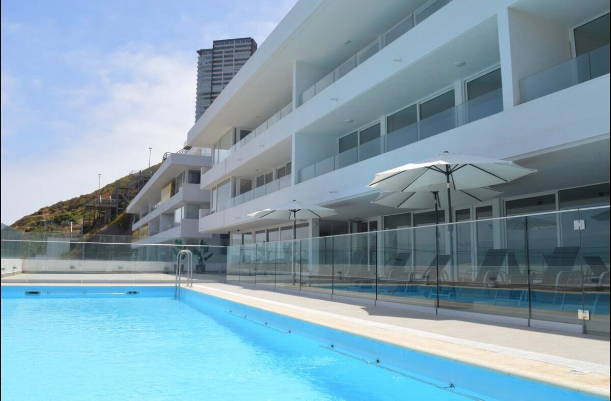 Appartamento in prima fila nell'esclusivo progetto Terrazas de Cochoa, a pochi passi dalla spiaggia di Cochoa e dal Settore 5 di Reñaca. Circondato da ristoranti, minimarket e caffetterie. Progettato in stile minimalista e impeccabilmente pulito grazie alla nostra meticolosa attenzione, include tutti i comfort: biancheria da letto e asciugamani, oltre a un parcheggio custodito. L'appartamento dispone di una cucina completamente attrezzata, di wifi ad alta velocità e di una terrazza panoramica con vetrata.