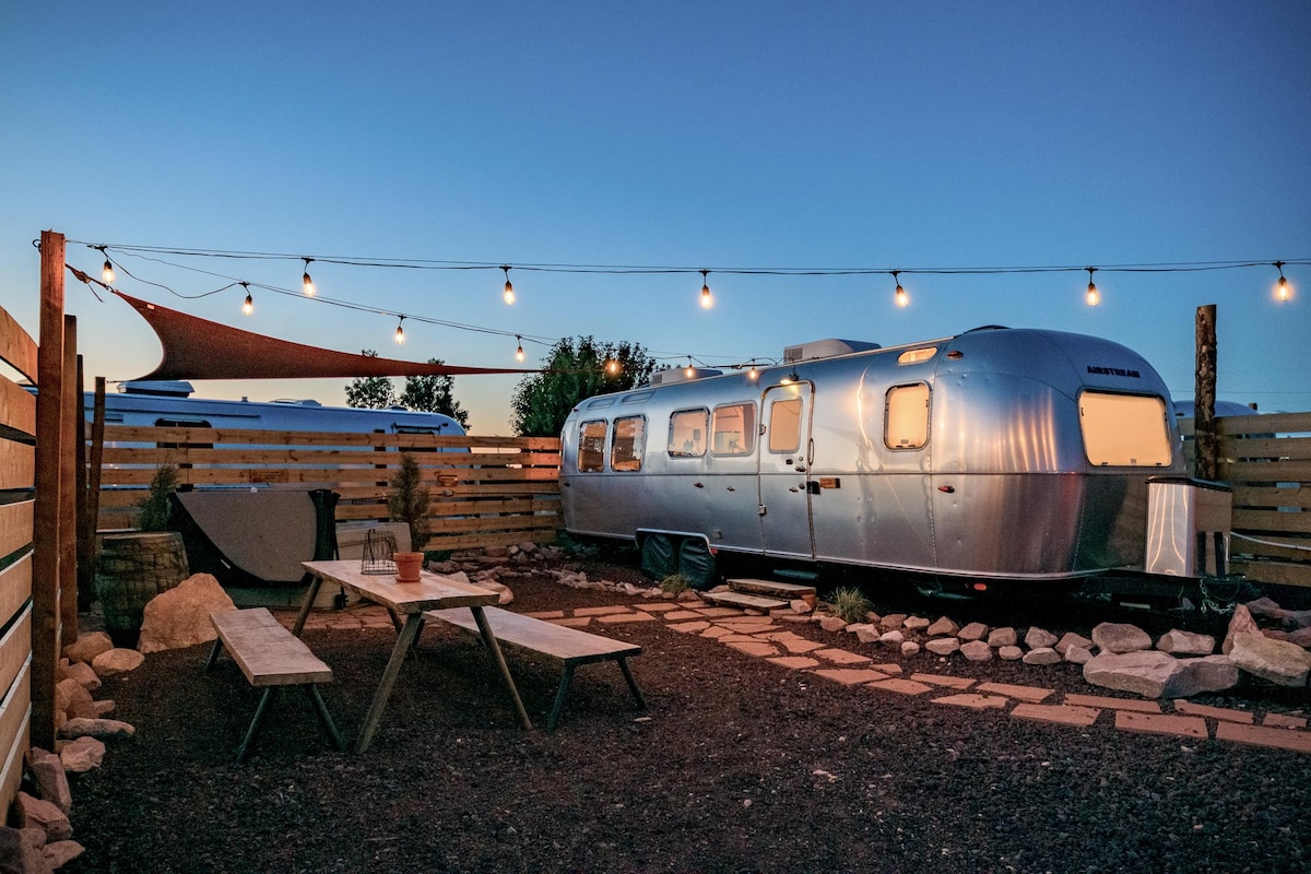 Ever dreamed of staying in a shiny Vintage Airstream RV travel trailer? Staying in an Airstream RV is so much more memorable than a pricey hotel. Airstream Alley is considered glamping in the downtown Flagstaff Arizona Downtown district. Everyone loves camping, but secretly wish they had a real bed, Wifi, a bathroom and nightlife within walking distance. The Airstream Alley RV Vintage trailer is the perfect silver bullet you’re not likely to forget.