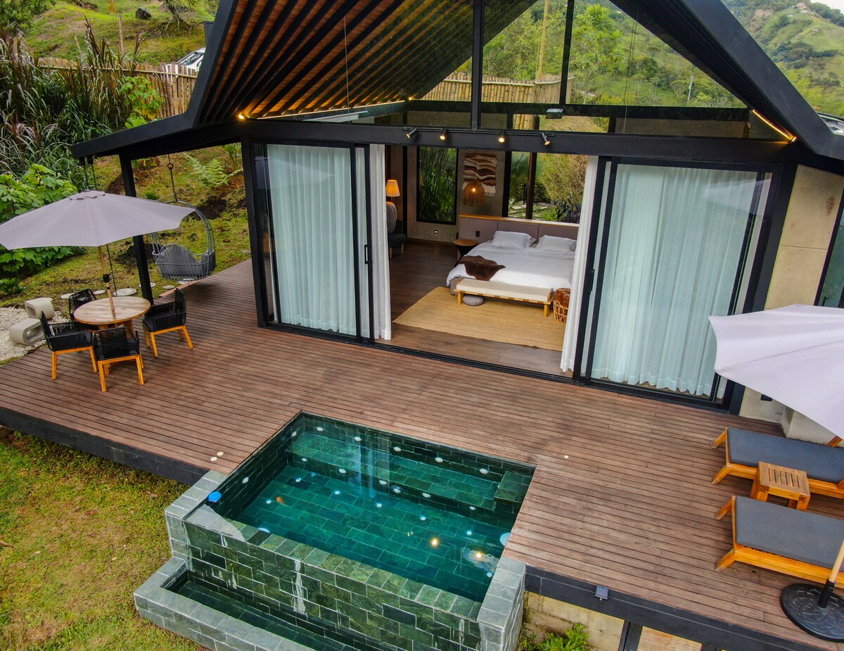 FORESTA is a modern cabin created with love for you to have an unforgettable stay in the middle of nature, with total comfort. Enjoy the privileged views from the deck, chill out in the jacuzzi, watch the dozens of birds that visit us, or have a chat by the fireplace in the living room. FORESTA is a great launchpad to explore Guatape, climb the Rock and do kayaking, jet-skiing, wakeboarding, sailing, paraglading, horseback riding, hiking, helicopter tours or ATV rides. You choose!