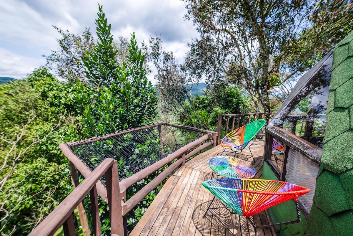 Disconnettiti dalle tue preoccupazioni in questo spazio spazioso e sereno. Coffee farm dove puoi connettere mente e corpo con la natura, goderti un clima piacevole e splendidi tramonti. Luogo perfetto Per riposare e staccare dalla vita di tutti i giorni potrai trascorrere momenti indimenticabili Potrai goderti il canto degli uccelli, è ideale per coppie - Ha un Glamping a cupola trasparente, vasca idromassaggio, doccia esterna, colazione 🍳 inclusa.