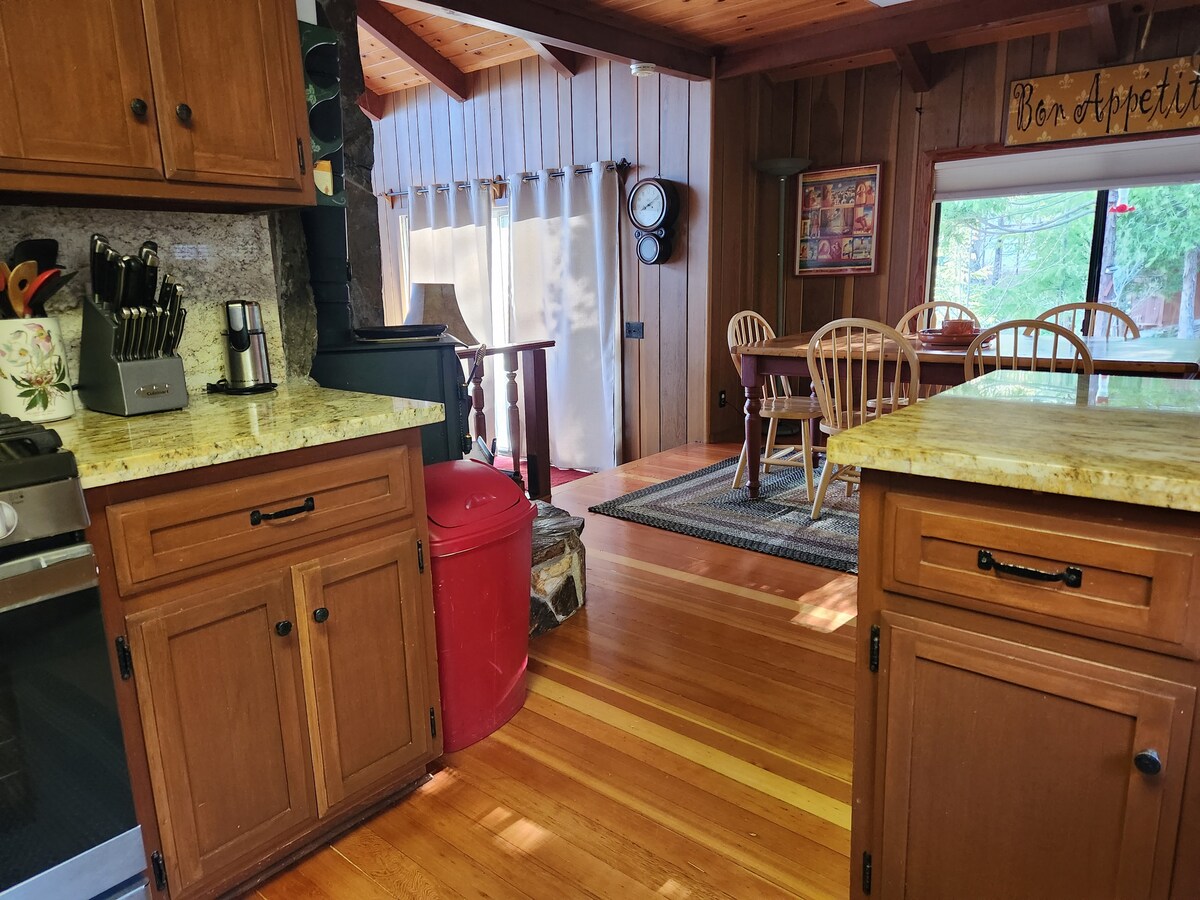 Beautiful tri level cabin with 4 bedrooms with 1 king bed and 3 queen beds and 2 bathroom. Main floor includes living room, dining room, kitchen, 2 bedroom, 1 bathroom, laundry room and sliding glass door leading to wrap around deck. Upstairs includes 2 bedroom with private decks and 1 bathroom. Downstairs includes huge game room with full size bunk beds, ping pong and air hockey table, and 3 arcade video games, foosball table and much much more.