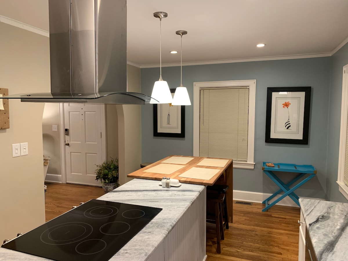 Charleston, SC themed!! 1 GIG wifi!! NOT A SHARED 1 bed 1 bath (UPSTAIRS) apt/large full kitchen & luxury amenities MsPACMAN/ATARI, Sega/DirectTV all sports/movie channels/DVR Bose sound. SERVICE for 8! Cook w/gas stove with Wolfgang Puck pots and pans, fondue pot etc. Freestanding bldg in downtown Columbia in quiet residential area. Walk to Publix/ other shopping or USC football games. Approx 1 mile to all Devine St shopping. Discounts for 7&30consecutive days. Brew hot and cold Keurig!!