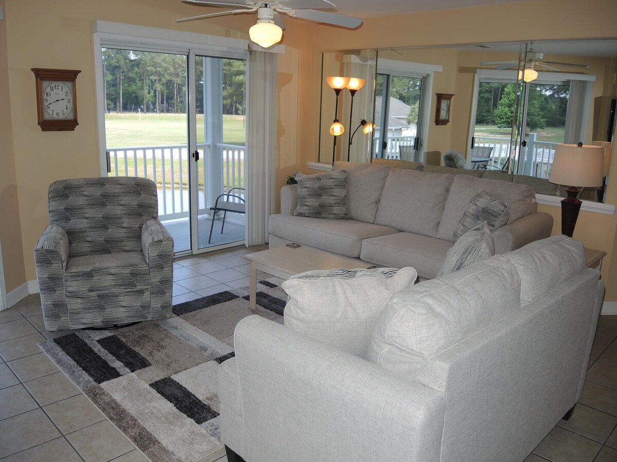 You will be close to everything. Brunswick Plantation 27 hole golf course in backyard along w club house grill & bar. 8 miles from Beach. No. Myrtle Beach is 8/9 miles away w amazing dining choices. Loads of golf courses just a quick drive to in North Carolina & South Carolina. Outlet malls for designer/name brand shopping. Very low cleaning fee. 2 bedroom 2 full bathrooms. Huge lvgrm/kitchen & outside deck w amazing views. Fitness center w outdoor pool & hot tub! Located on 3rd floor.