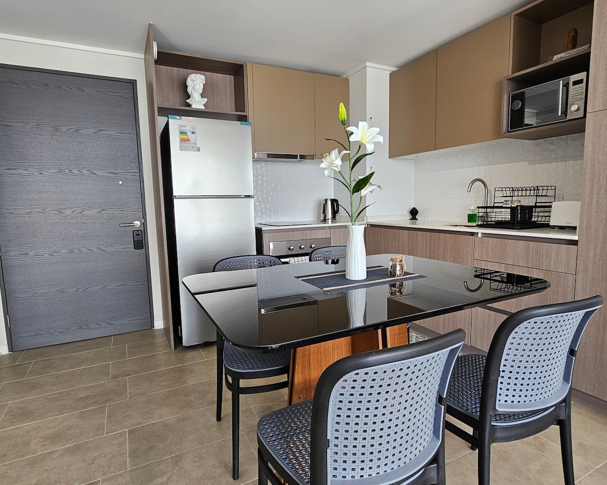 Il tuo soggiorno perfetto a Concepción! Moderno appartamento con 1 camera da letto, ideale per viaggi, lavoro o una sosta veloce. A soli 5 minuti dall'aeroporto e a 3 minuti dal centro commerciale. Zona residenziale sicura e tranquilla. Goditi comfort, stile e tutto il necessario per un soggiorno fantastico. 🛏️ Letto matrimoniale + divano letto singolo Terrazza 🌇 privata Accesso alla🏋️ palestra e alla lavanderia 🚗 Parcheggio gratuito. Wi-Fi 📡 veloce + TV 🍳 Cucina attrezzata Prenota ora e sentiti come a casa!