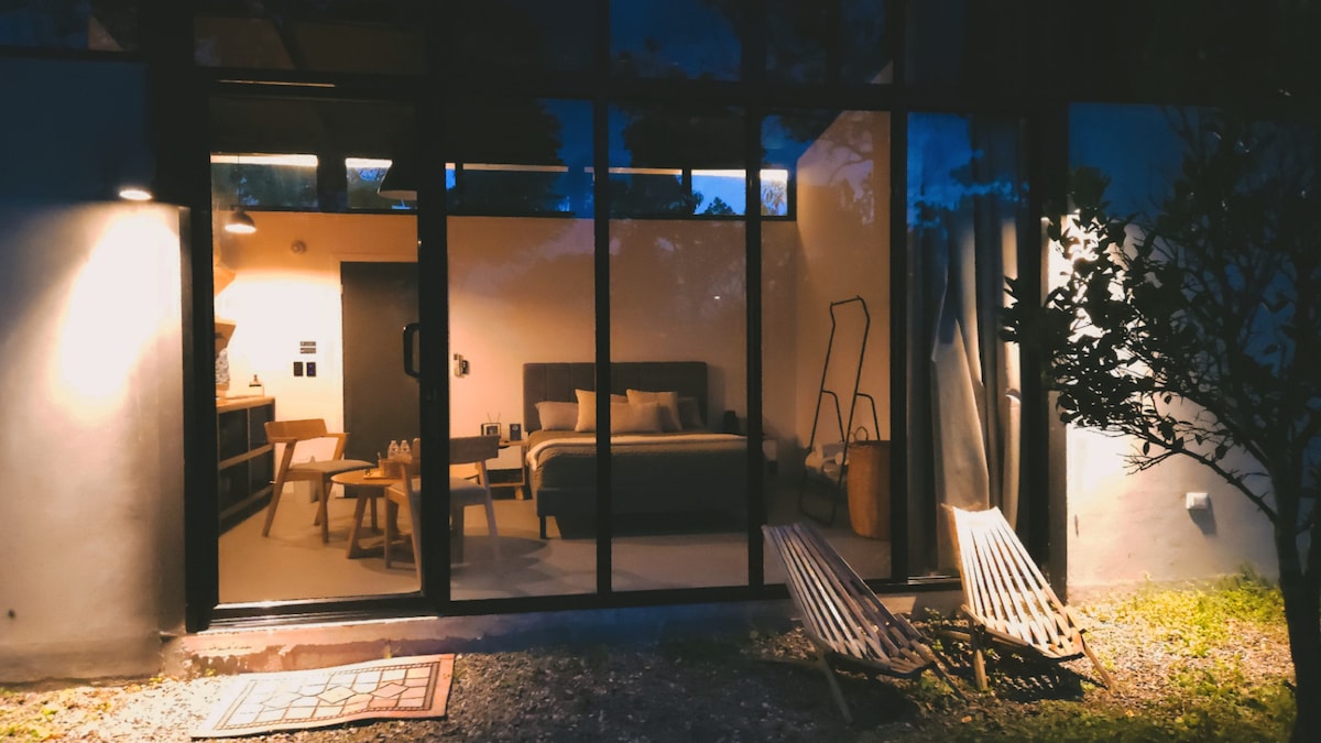 Modern tiny house just 10 minutes from CA-5, located within a coffee farm, featuring a private jacuzzi and grill. With self check-in, air conditioning, high-speed Starlink internet, retractable screen + Netflix, and thoughtful details for your comfort and relaxation, this space is ideal for couples seeking an intimate, cozy, and uninterrupted experience.