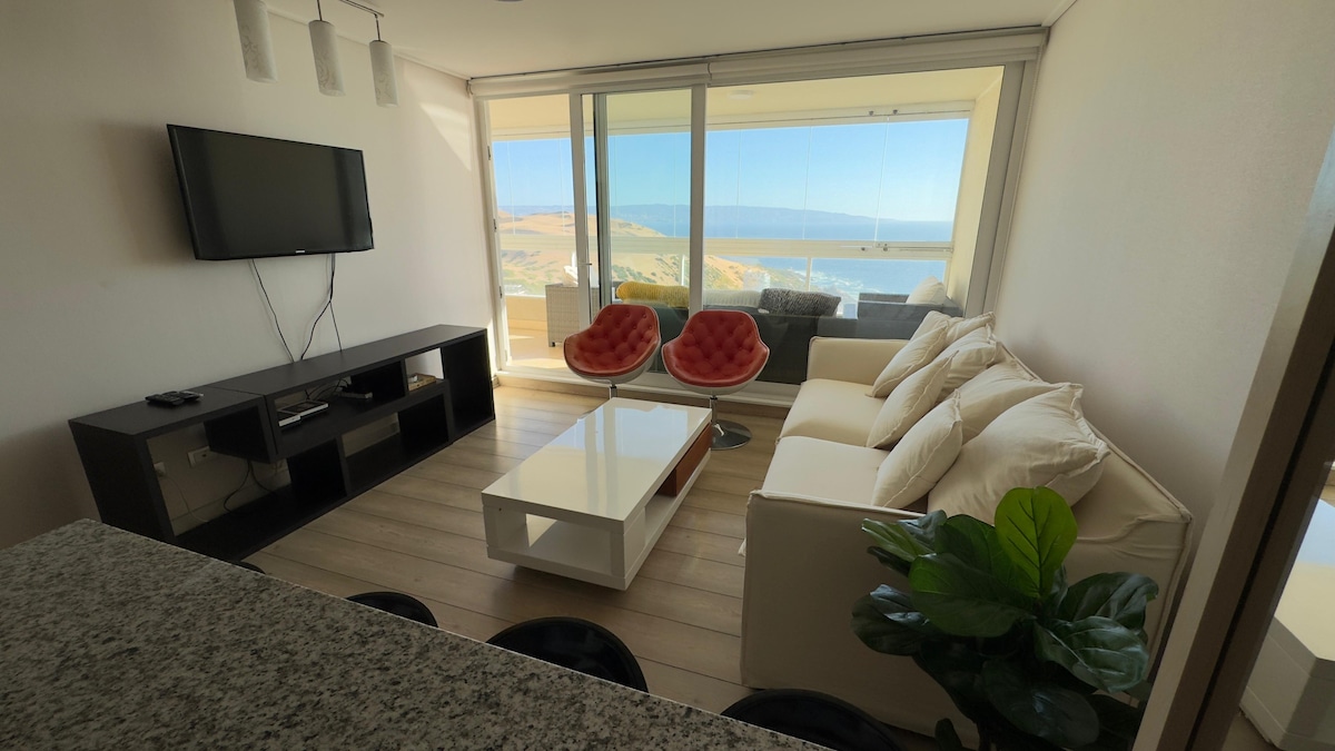 Welcome to "Oasis Costero" A new, fully equipped apartment on the waterfront with an ocean view in Concón. - Outdoor pool available between November and March. - Private parking. - Spacious terrace with ocean view equipped with an electric grill. - Includes bed linens and towels. - WiFi, and a Smart TV. - Fully equipped kitchen. - Safe and quiet area. - Just steps away from Beaches, Restaurants and Bike Paths.
