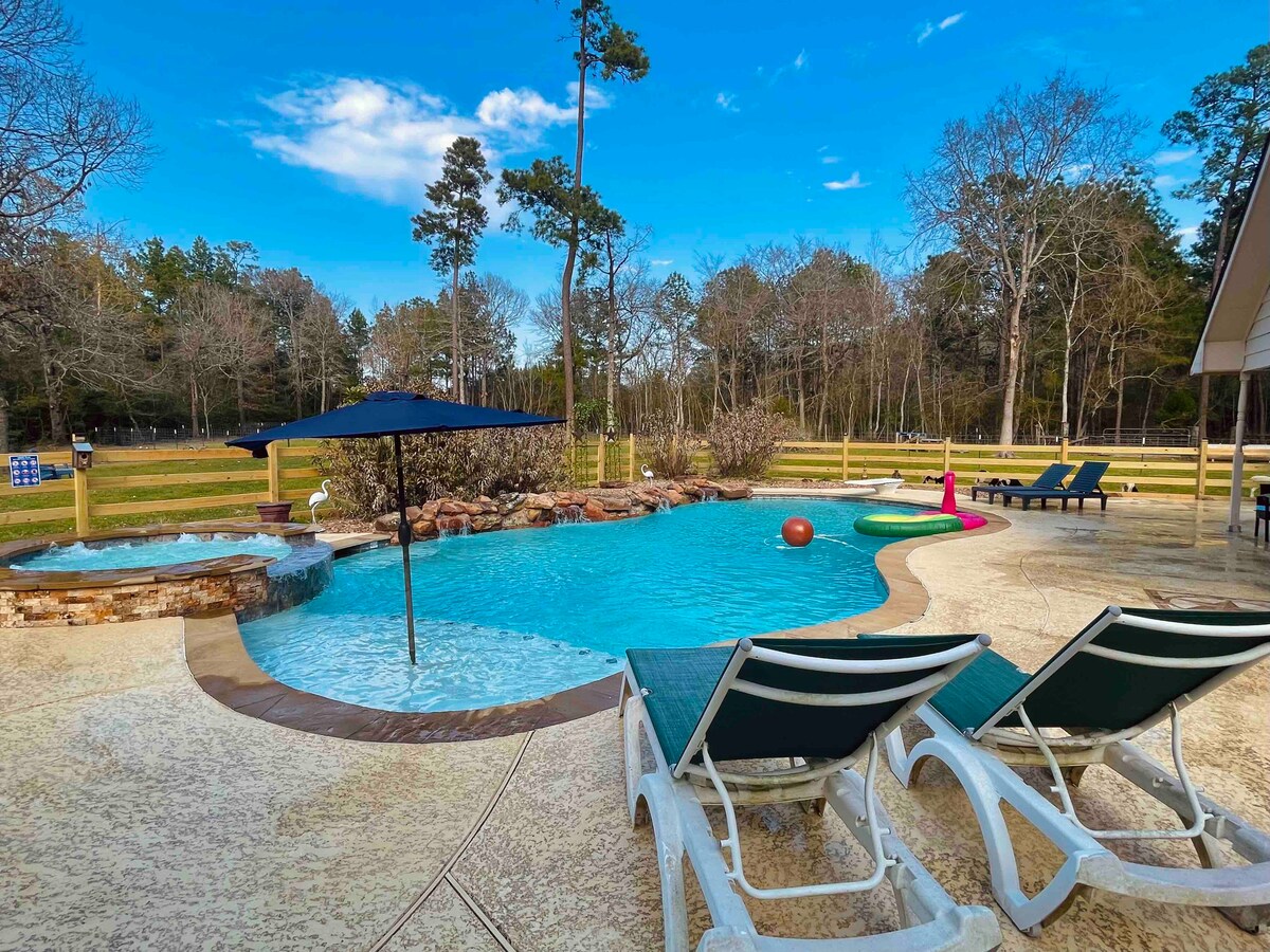 Rifugiati in questo rifugio privato di 3 acri appena fuori Houston, dotato di una piscina in stile resort con bar incassato, vasca idromassaggio interrata, cucina all'aperto e campo da basket. La Pool House può ospitare 12 persone ed è l'ideale per rilassarsi o organizzare eventi. Goditi l'accesso condiviso a un laghetto per la pesca e a un parco giochi. Con ampie aree interne ed esterne, questa casa è perfetta per intrattenere familiari, amici o gruppi. Prenota oggi stesso il tuo soggiorno a Tomball!