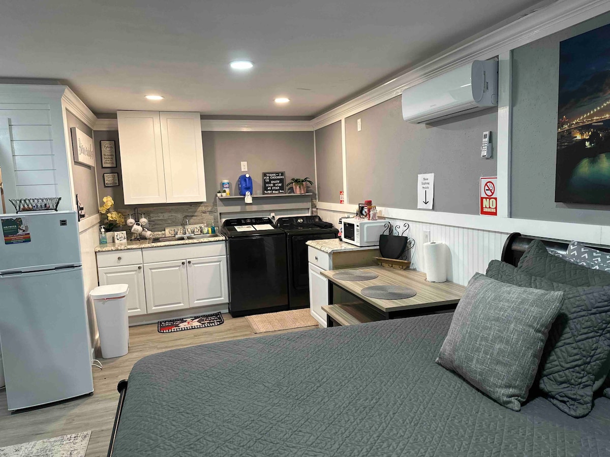 Pensione con una camera da letto con letto matrimoniale e divano futon in un quartiere tranquillo vicino a tutti i servizi che il lago Conroe e la storica zona di Montgomery hanno da offrire. TV Roku e internet, piccolo frigorifero, aria condizionata e bagno con doccia. Telecamere presenti solo all'aperto. È consentito fumare solo all'aperto. Su richiesta, è possibile effettuare il check-in anticipato. Roulotte NON AMMESSE. Location per matrimoni a 20 minuti di distanza o più vicine A 20 minuti dal RenFest A 40 km da The Woodlands A 72 km dall'aeroporto intercontinentale Bush