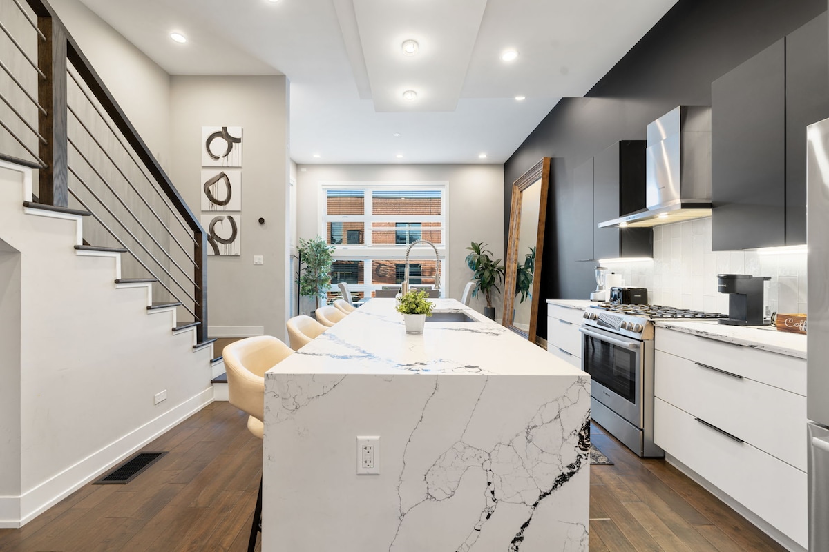 **LEGGI LA DESCRIZIONE COMPLETA DI SEGUITO E CLICCA SU "CONTATTA L'HOST" PRIMA DI RICHIEDERE UNA PRENOTAZIONE** Casa di design urbano in centro vicino alla metropolitana Blue Line (diretta per Loop o O'hare), Salt Shed Theater, Michigan Avenue,, United Center e vita notturna. Perfetto per famiglie, gruppi di lavoro o viaggiatori moderni; può ospitare più di 12 persone. Spazioso appartamento duplex con ampia terrazza nel quartiere centrale e alla moda di River West. A pochi passi da ristoranti, caffetterie e locali notturni. A 2 fermate di metropolitana da Loop, a 40 minuti diretti dagli aeroporti. Parcheggio disponibile!