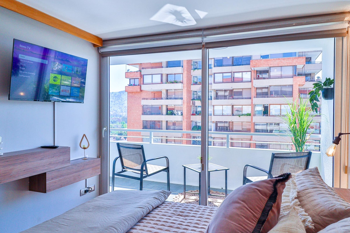 Acogedor y moderno estudio en Las Condes, a solo 3 minutos caminando del Metro Hernando de Magallanes. Ubicado en un barrio seguro y tranquilo, rodeado de parques, restaurantes, cafés y centros comerciales. El espacio cuenta con A/C, cocina full equipada, Smart TV, WIFI, zona de descanso confortable y todas las comodidades necesarias para una estadía placentera. Ideal tanto para turistas que desean explorar Santiago como para viajeros de negocios que buscan comodidad y excelente conectividad.