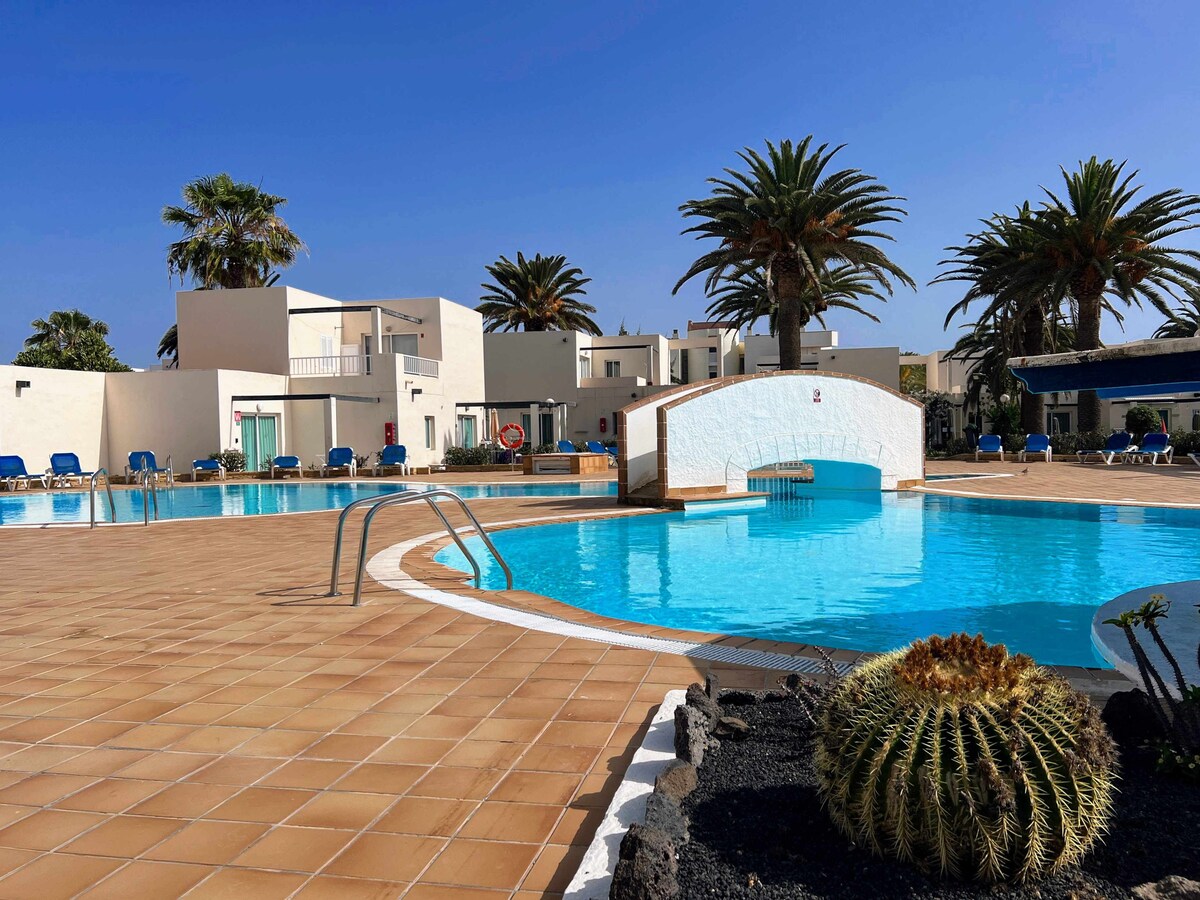 Un'oasi di tranquillità proprio nel centro di Corralejo! Questo grazioso appartamento con 2 camere da letto, ben arredato, gode di una posizione ideale. Dalla spaziosa terrazza si gode della vista della grande piscina, del lussureggiante giardino e del mare! L'appartamento si trova a 100 metri dalla spiaggia più vicina. Proprio di fronte all'appartamento troverai un bar di tapas e ristoranti. A soli 50 metri intorno all'isolato, ci sono negozi, supermercati e una clinica sanitaria privata. Non è necessaria un'auto.