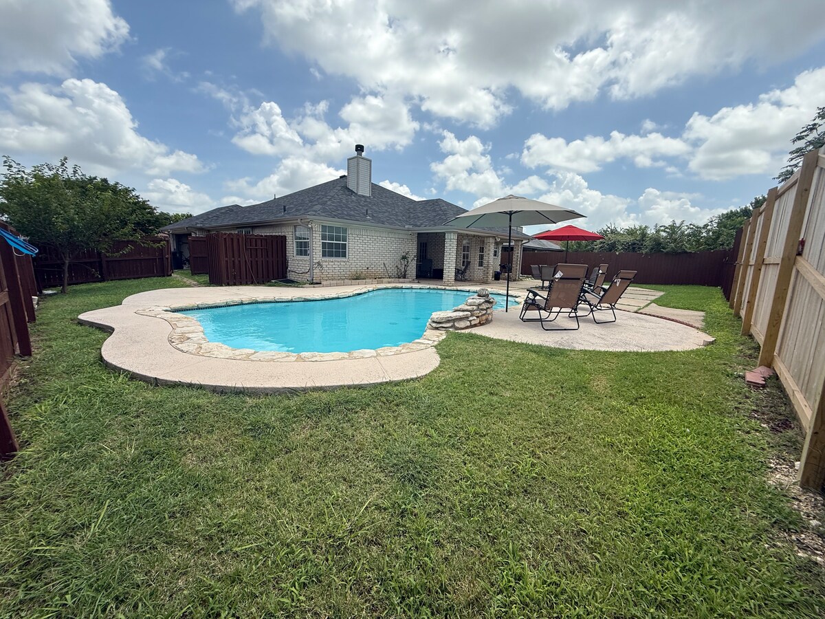 Sii nostro ospite in questa splendida casa con 3 camere da letto e 2 bagni vicino a Fort Hood, centri commerciali e ristoranti. Camera da letto matrimoniale molto spaziosa con bagno privato lontano dalle altre 2 camere da letto. Inoltre, dispone di una zona lavoro dedicata. Tutte le camere dispongono di smart TV e wifi. La cucina ha bellissimi piani di lavoro in granito con molti armadietti. Il cortile recintato e privato è perfetto per un barbecue in stile texano!