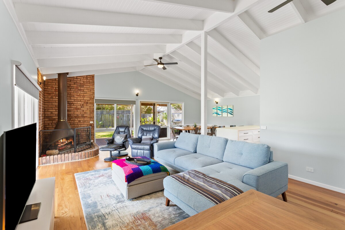 Family Foreshore Beach House. Tucked at the end of a quiet culdesac this relaxed foreshore hideaway is made for barefoot holidays. Wander to rock pools, play on the lawn, watch wallabies graze and kookaburras laugh in the trees or gather on the deck as the BBQ sizzles and waves roll in. Two living areas give families space to spread out while cosy bedrooms invite slow mornings with sea views. A fully equipped kitchen makes longer stays and entertaining a breeze your island home away from home