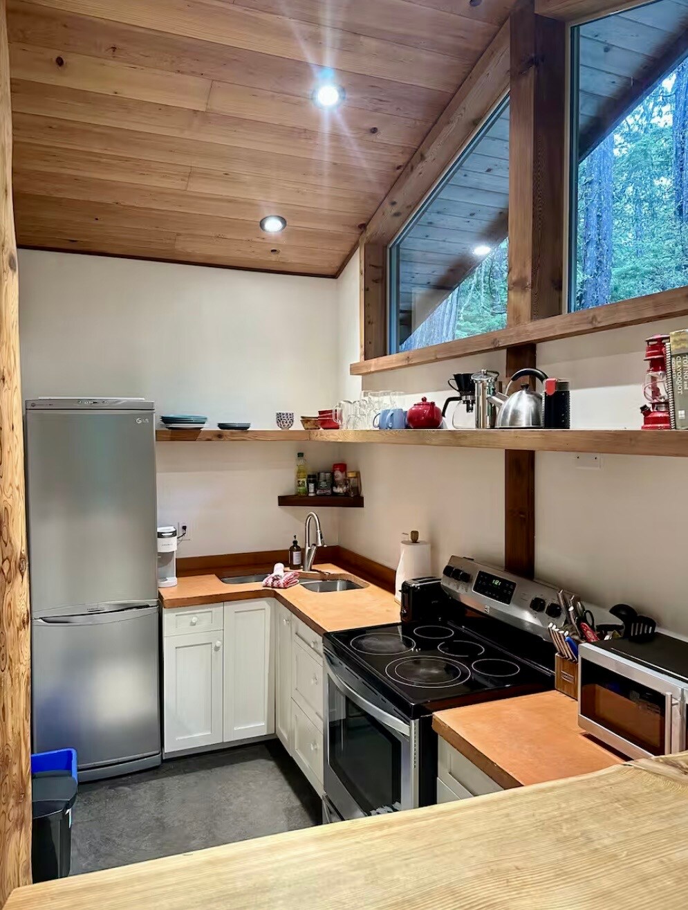 Beautiful new modern luxury one bedroom cabin facing the rainforest in Jensen Bay . Kick back and relax in this custom built cabin in a fantastic area. This cabin is walking distance to beaches , both Cox bay and Chestermans and a short drive into town. Beach cafes and restaurants This space is ideal for a couple or small famly looking for a home base to explore Tofino We are a licensed registered rental, in complete compliance with the District and new provincial STR laws
